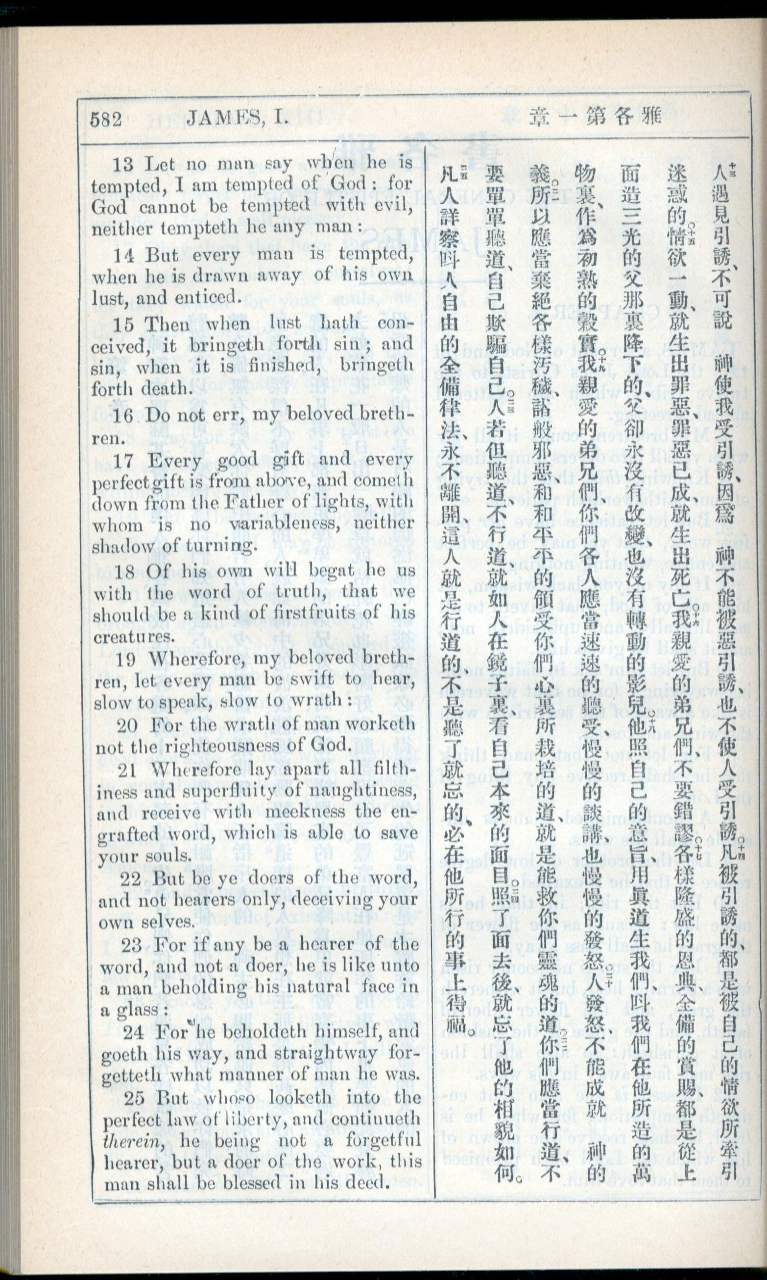 1908年新约全书(中西字) 雅各书 1 章 13 节到 1 章 25 节