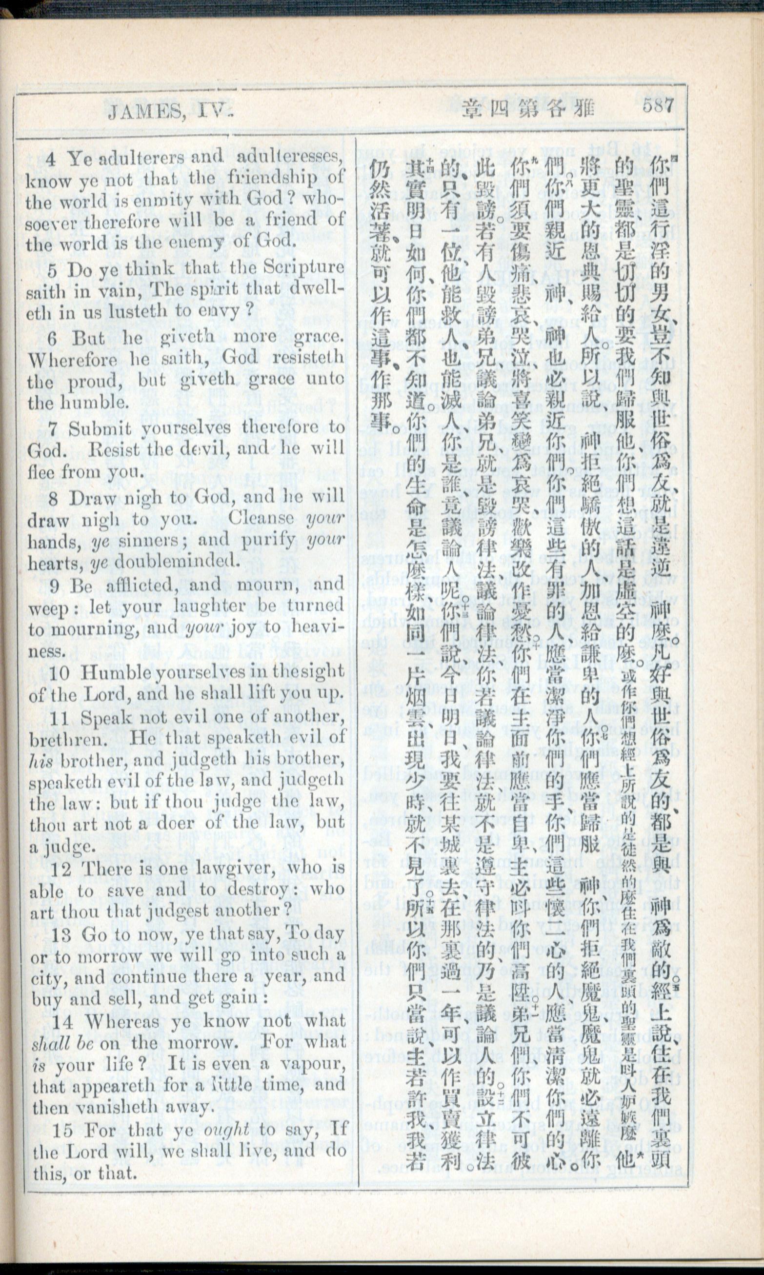 1908年新约全书(中西字) 雅各书 4 章 4 节到 4 章 15 节