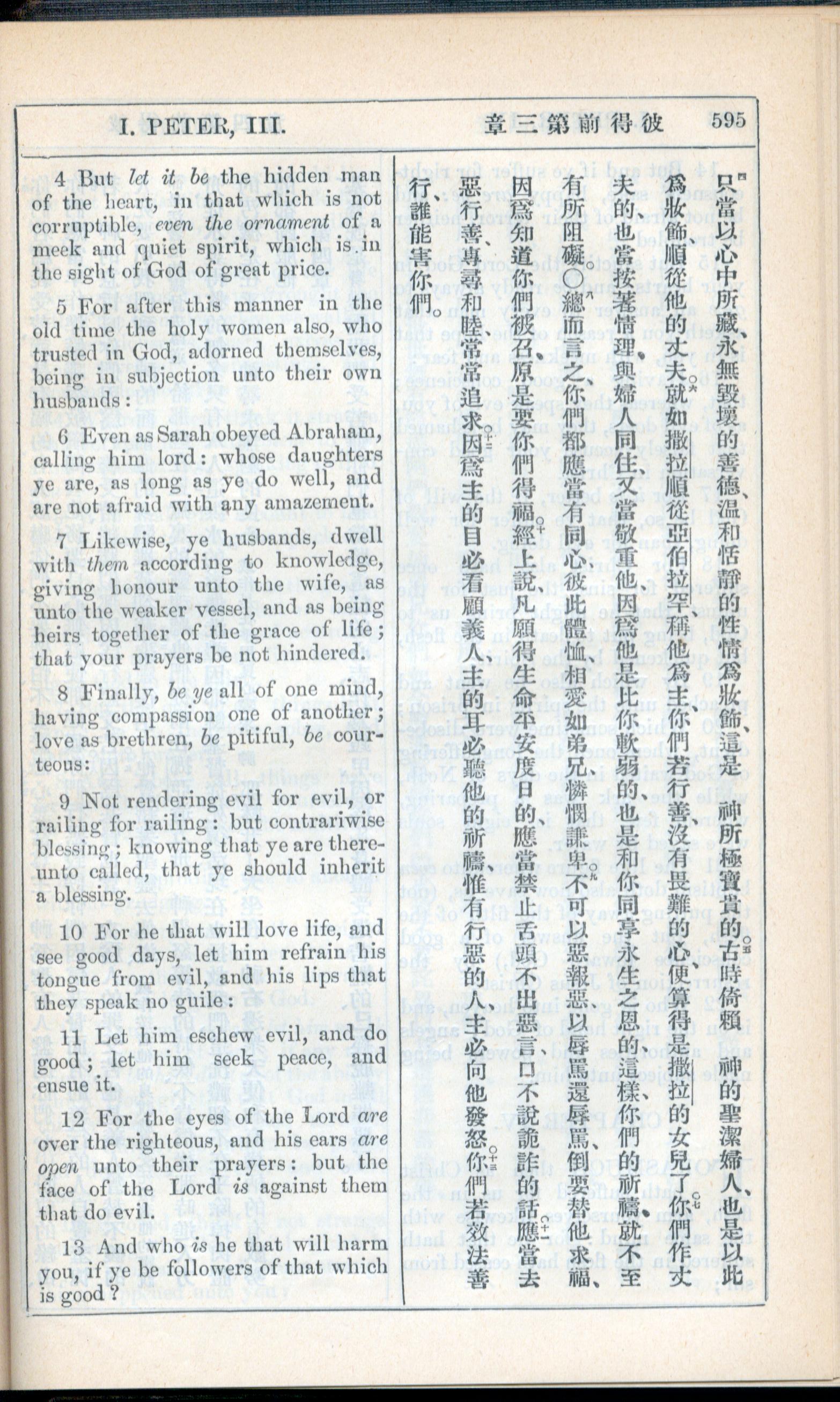 1908年新约全书(中西字) 彼得前书 3 章 4 节到 3 章 13 节