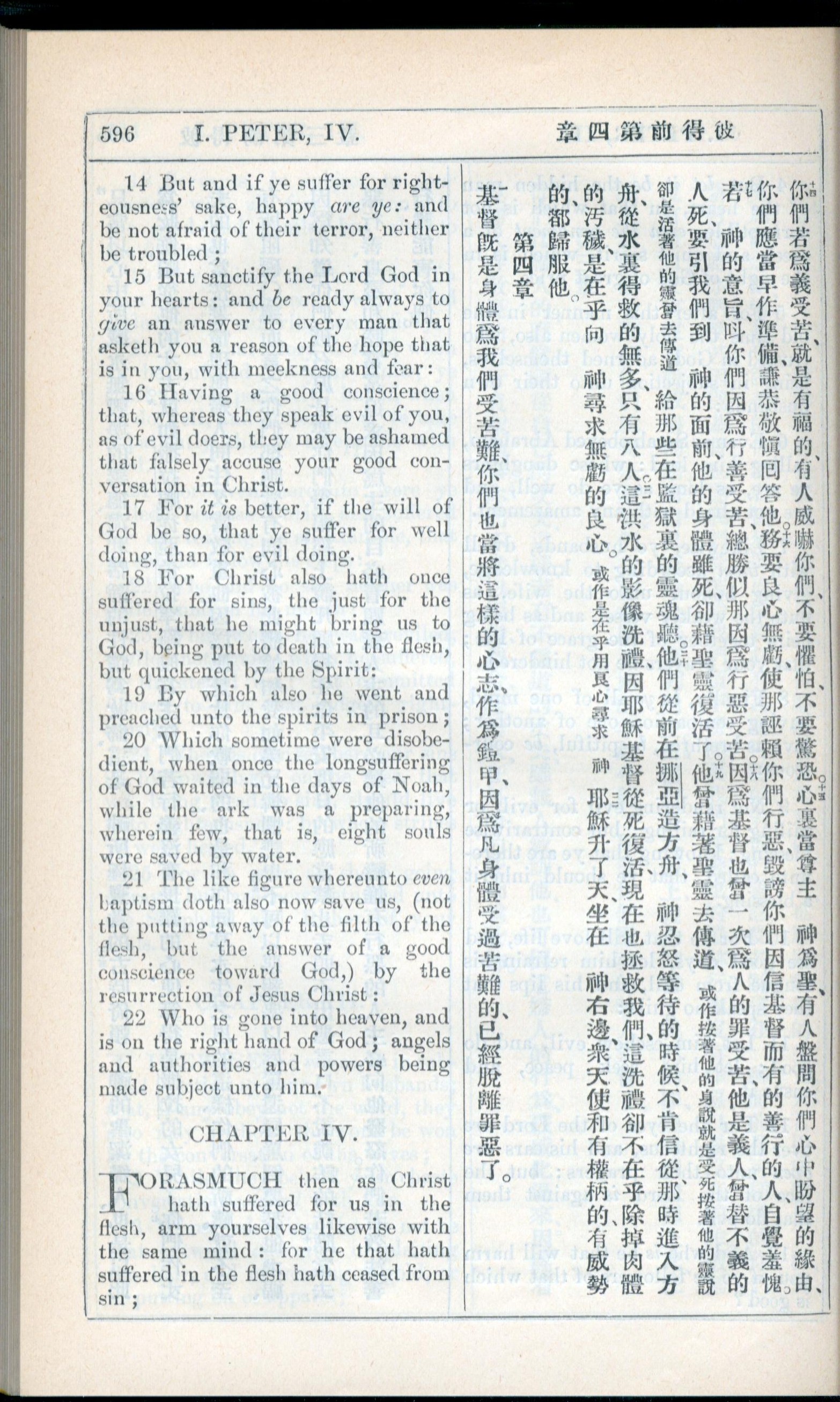 1908年新约全书(中西字) 彼得前书 3 章 14 节到 4 章 1 节