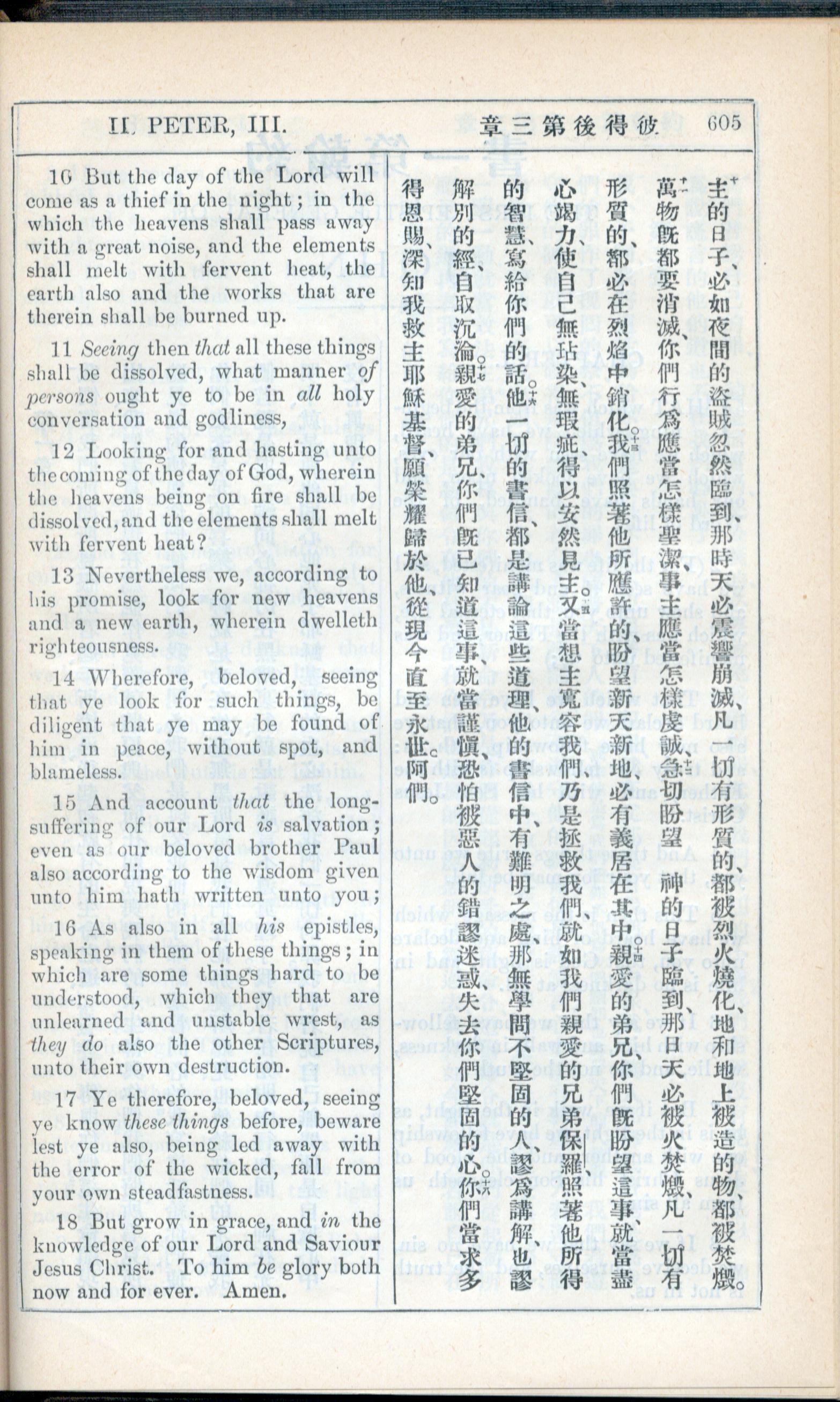 1908年新约全书(中西字) 彼得后书 3 章 10 节到 3 章 18 节