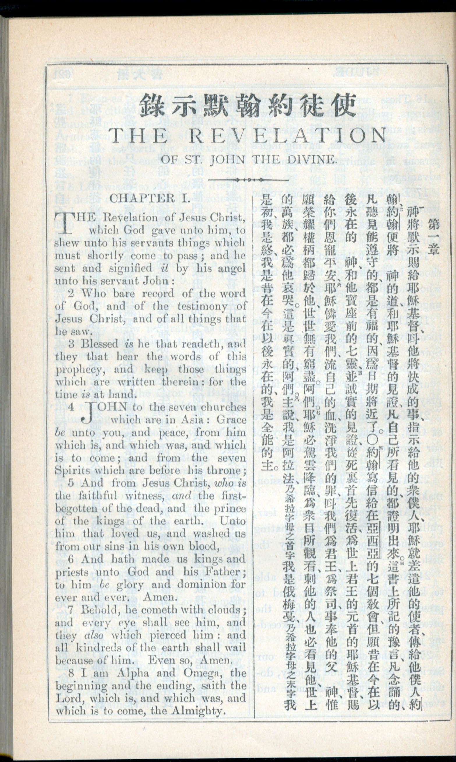 1908年新约全书(中西字) 启示录 1 章 1 节到 1 章 8 节
