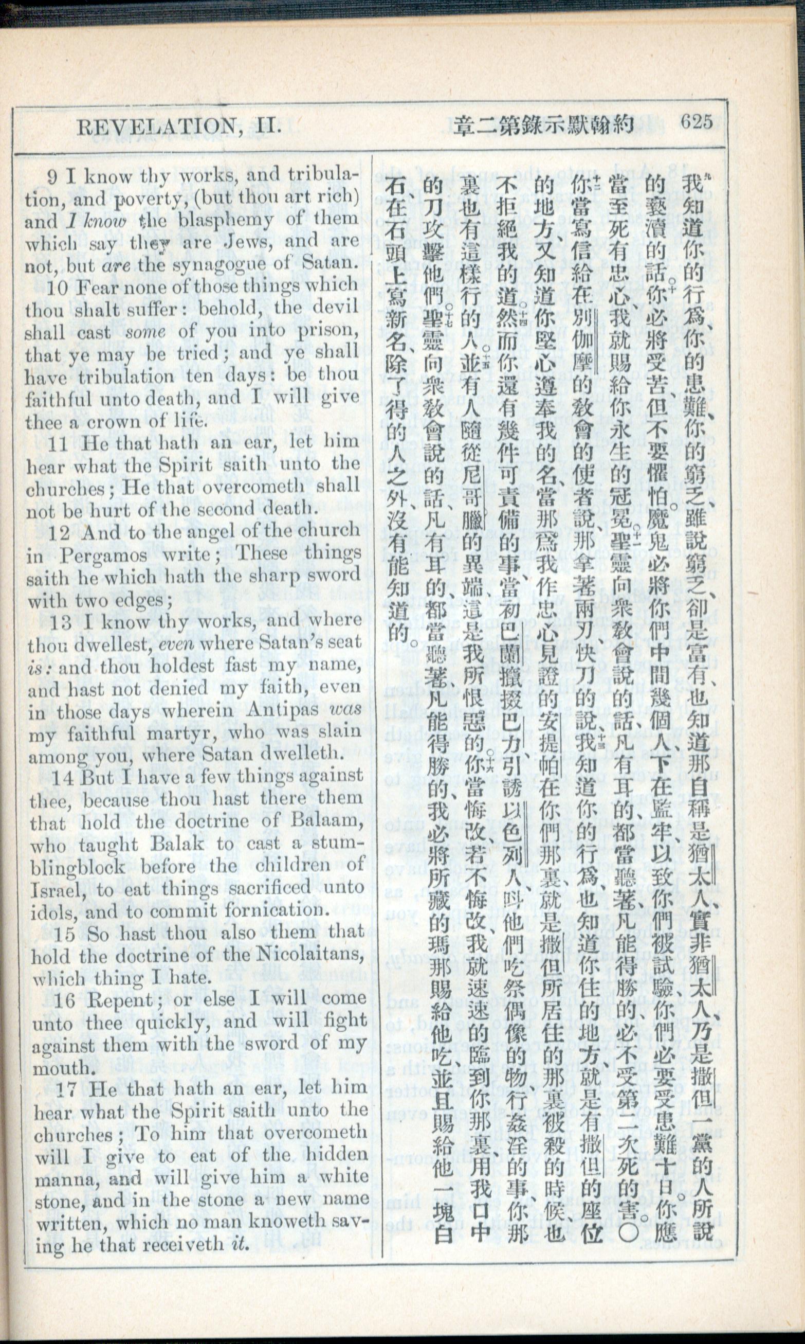 1908年新约全书(中西字) 启示录 2 章 9 节到 2 章 17 节