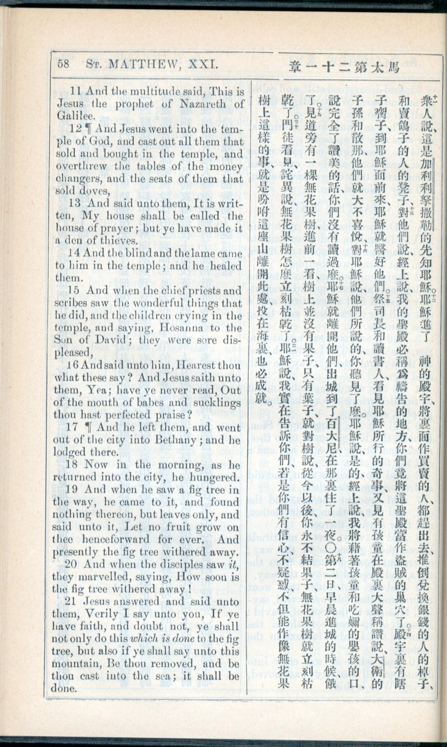1908年新约全书(中西字) 马太福音 21 章 11 节到 21 章 21 节