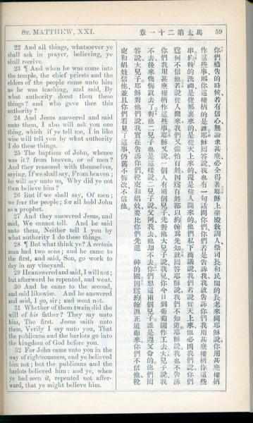 1908年新约全书(中西字) 马太福音 21 章 22 节到 21 章 32 节