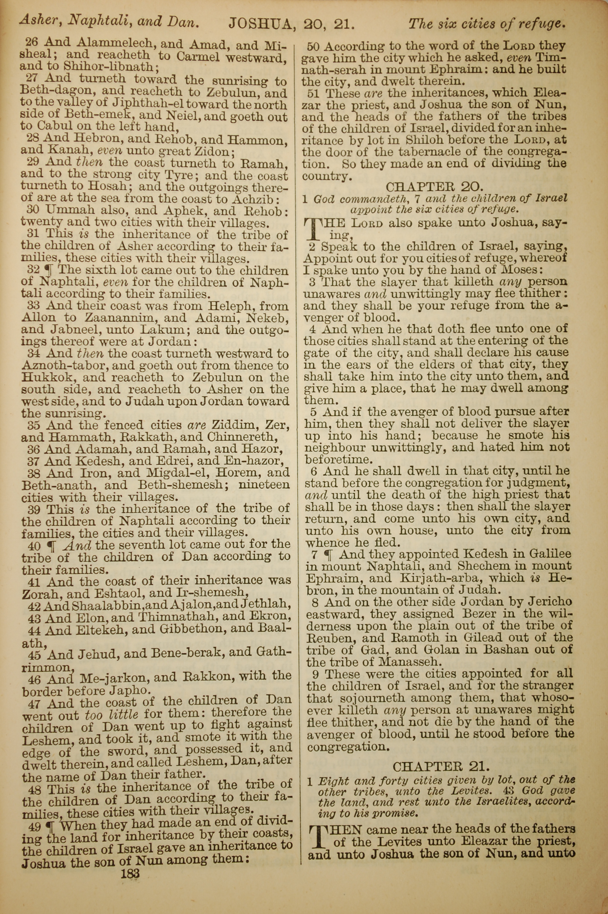 1886年英文圣经 约书亚记 19 章 26 节到 21 章 1 节