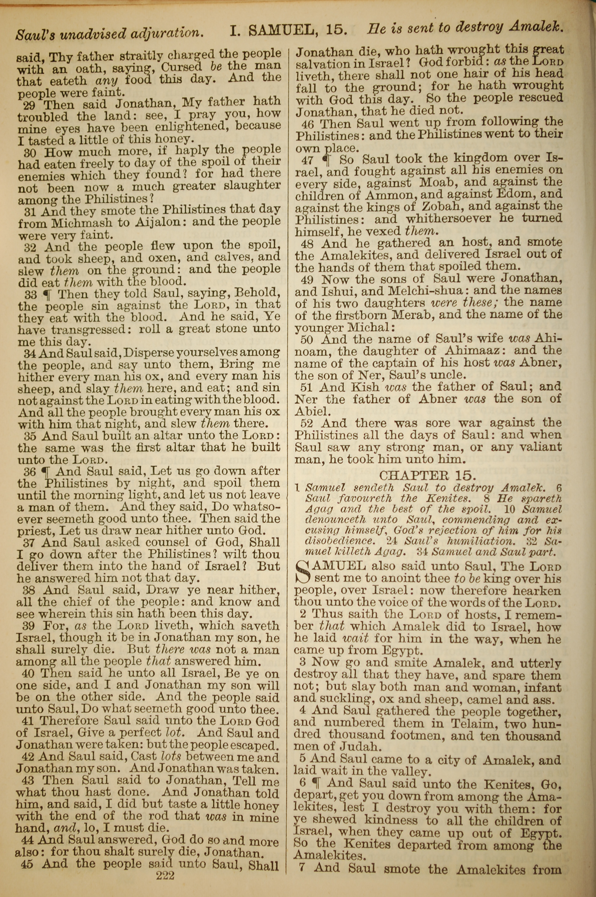 1886年英文圣经 撒母耳记上 14 章 29 节到 15 章 7 节