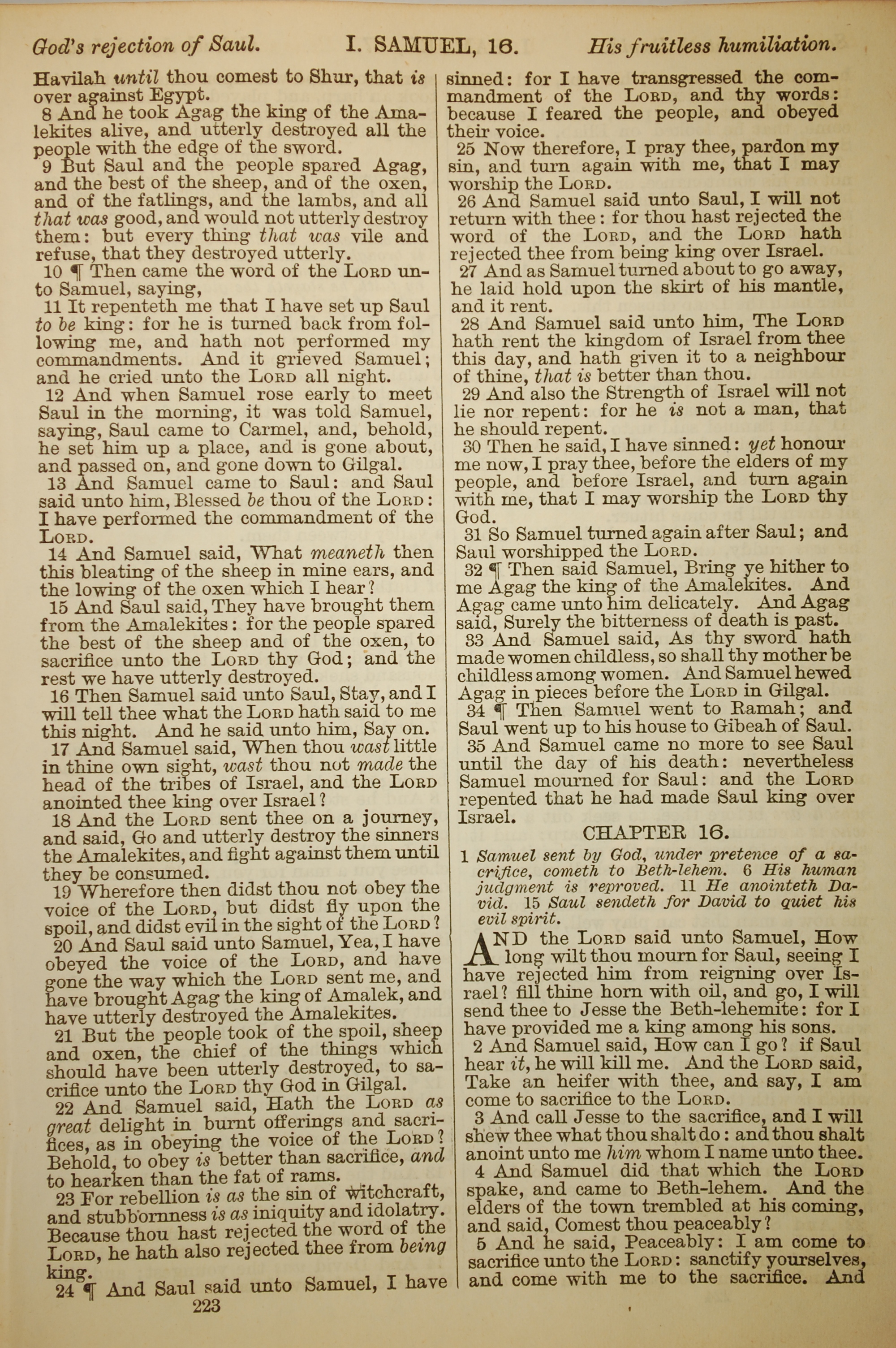 1886年英文圣经 撒母耳记上 15 章 8 节到 16 章 5 节