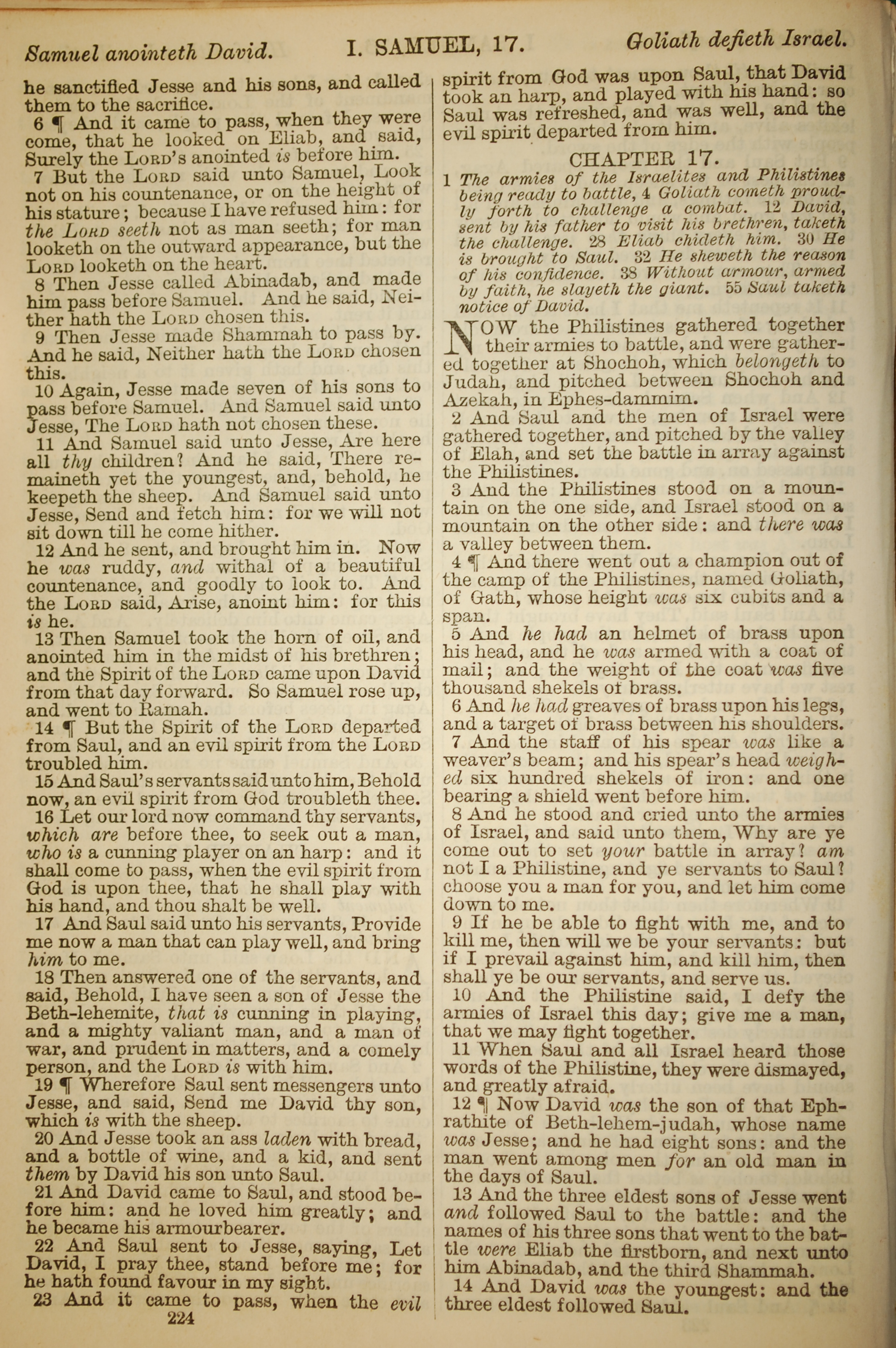 1886年英文圣经 撒母耳记上 16 章 6 节到 17 章 14 节