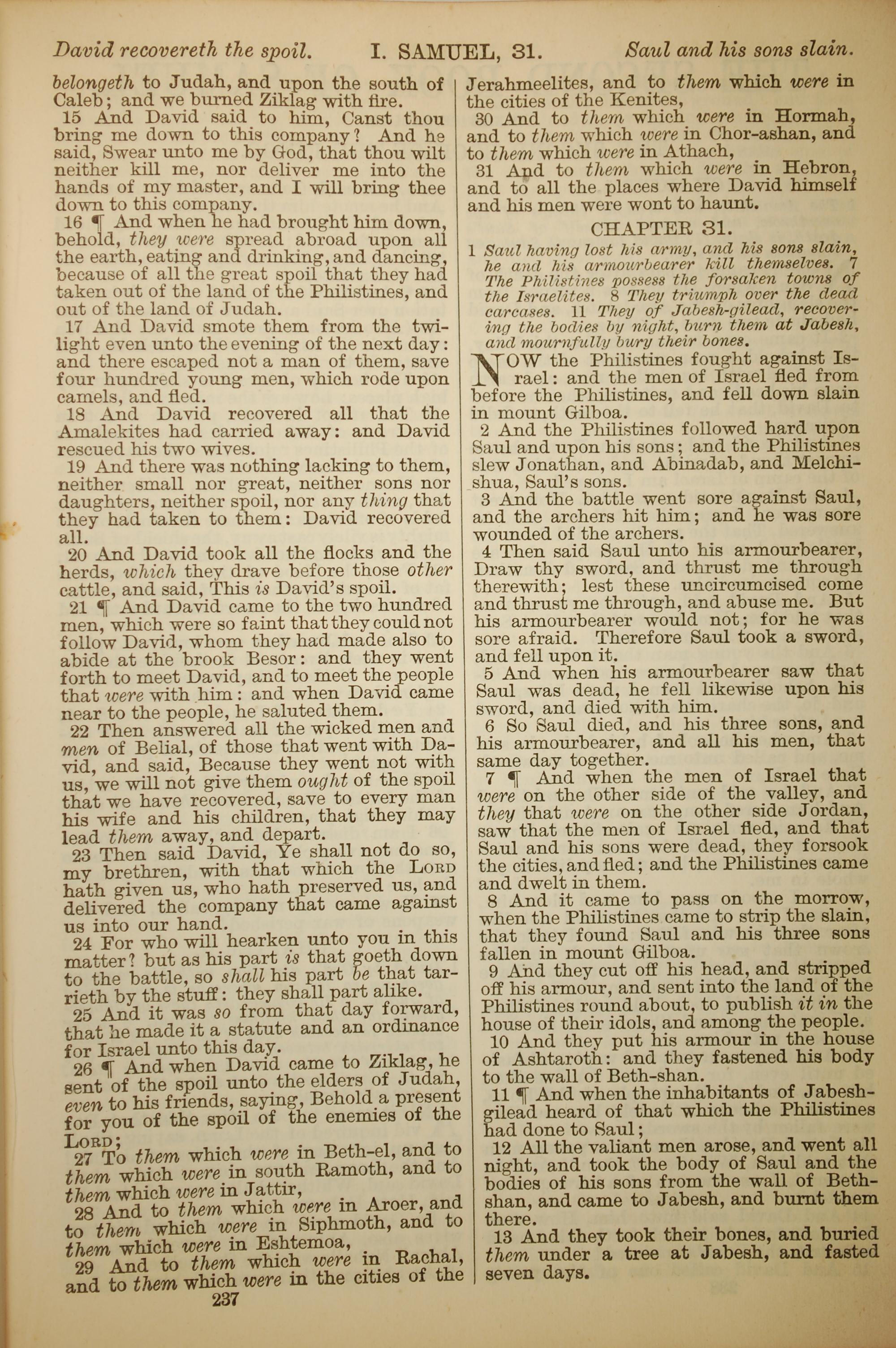 1886年英文圣经 撒母耳记上 30 章 15 节到 31 章 13 节