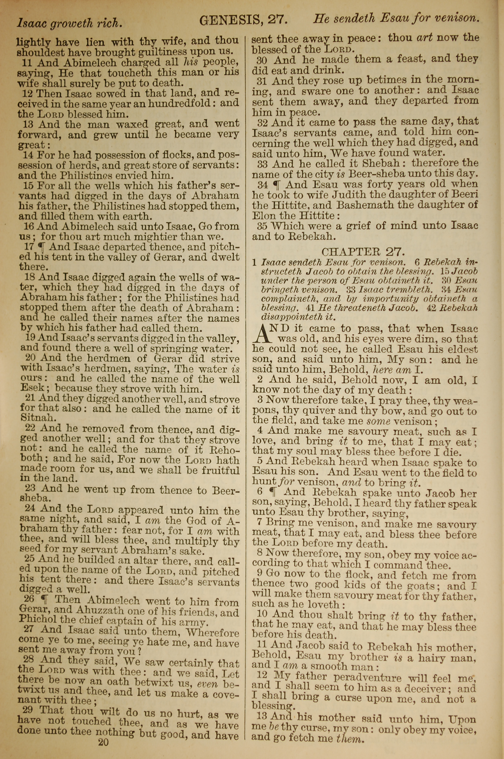 1886年英文圣经 创世记 26 章 11 节到 27 章 13 节