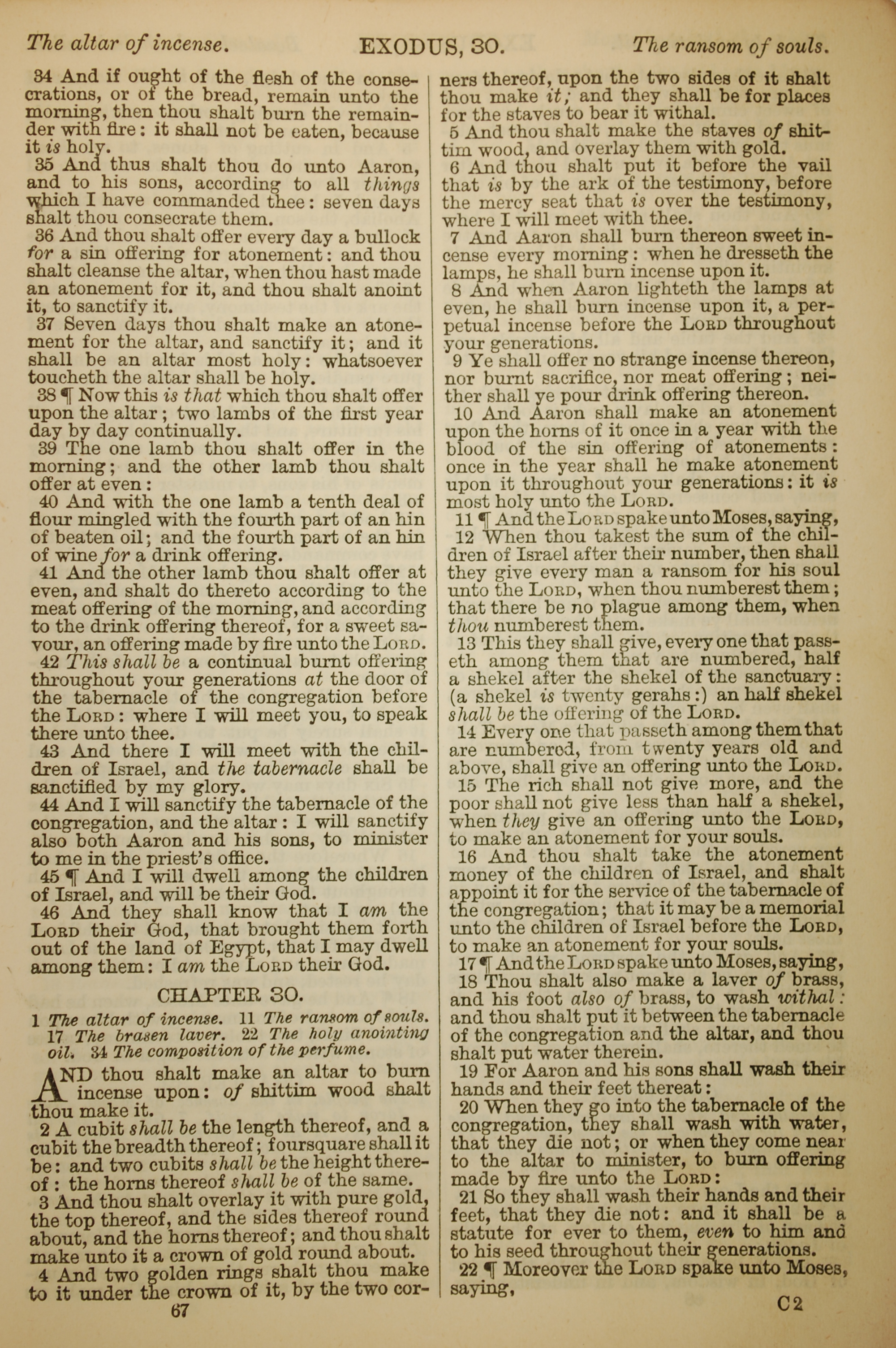 1886年英文圣经 出埃及记 29 章 34 节到 30 章 22 节
