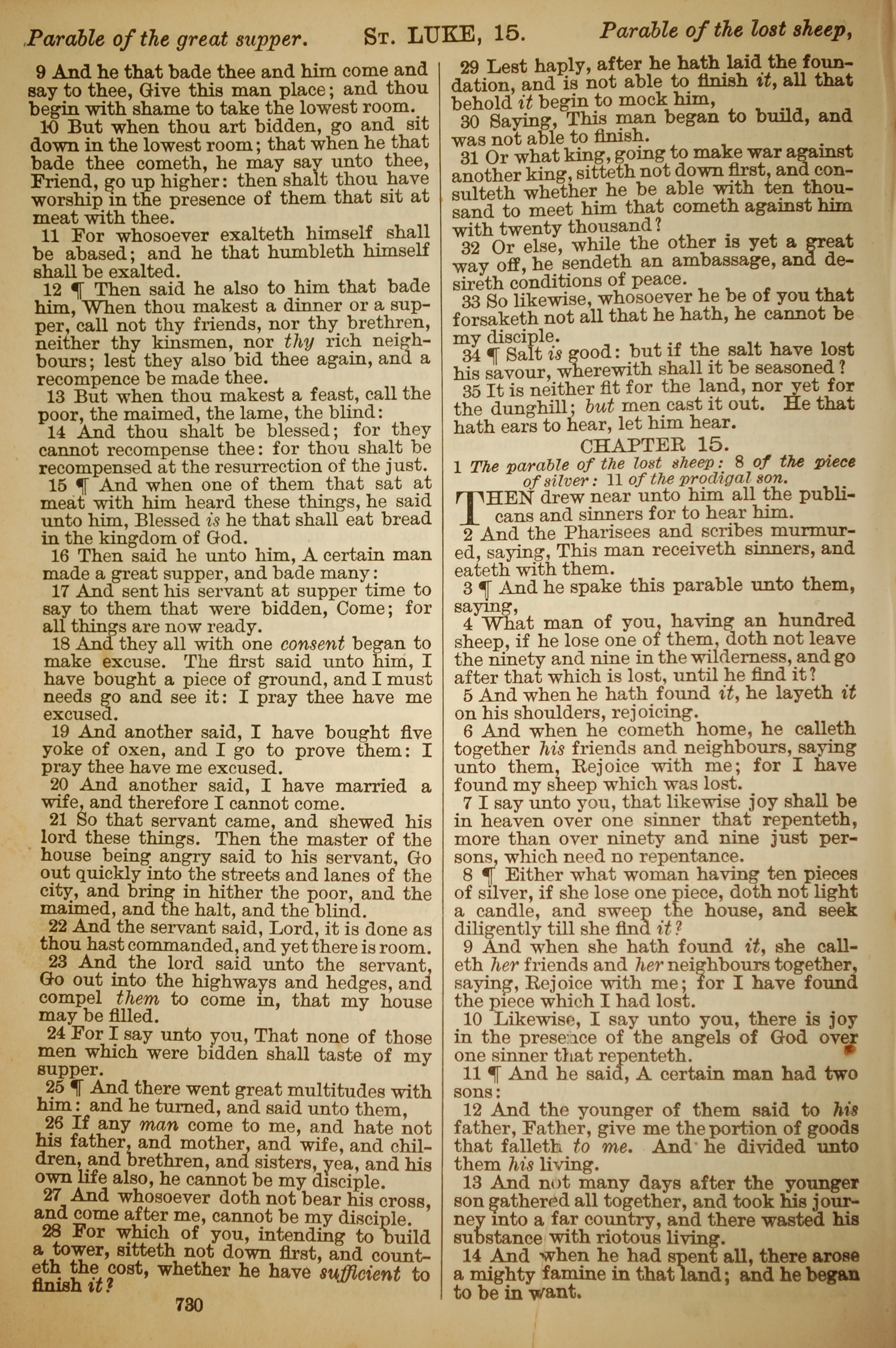 1886年英文圣经 路加福音 14 章 9 节到 15 章 14 节