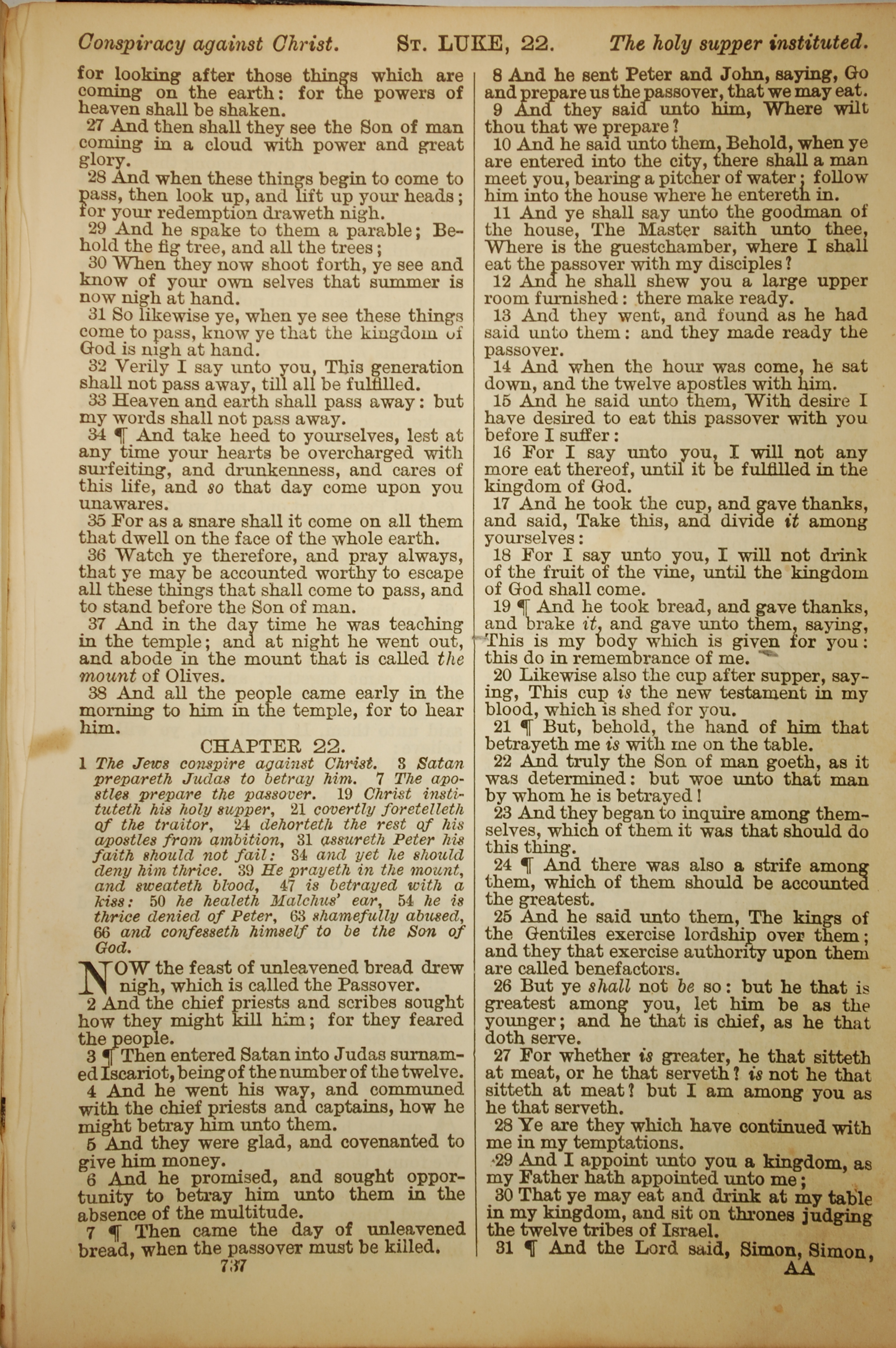 1886年英文圣经 路加福音 21 章 27 节到 22 章 31 节
