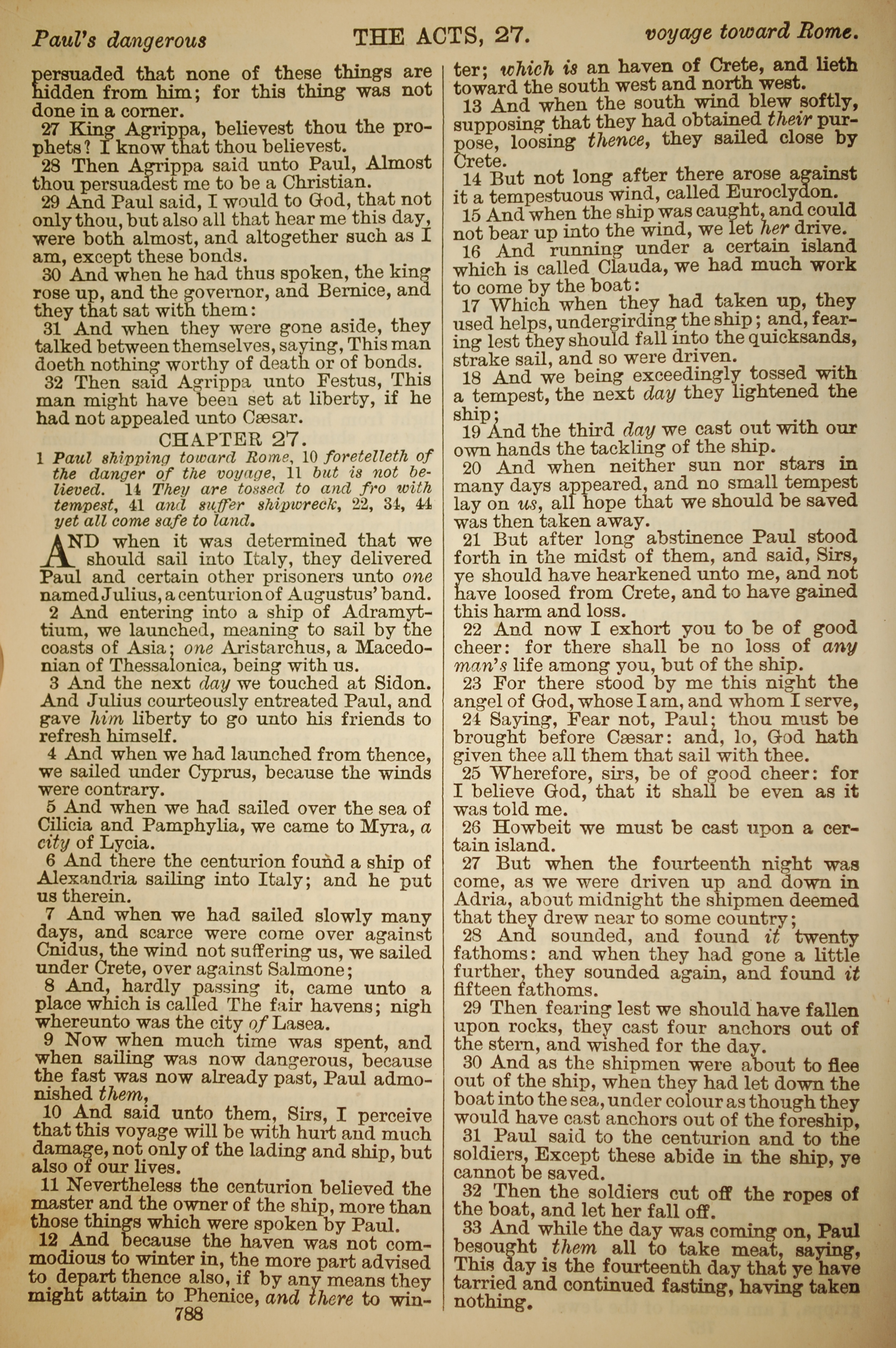 1886年英文圣经 使徒行传 26 章 27 节到 27 章 33 节