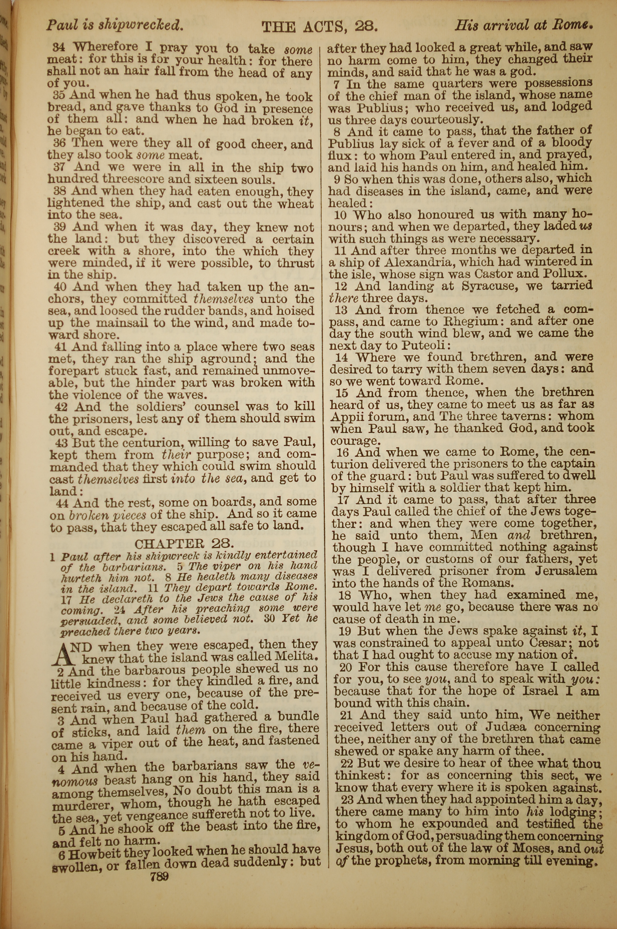1886年英文圣经 使徒行传 27 章 34 节到 28 章 23 节
