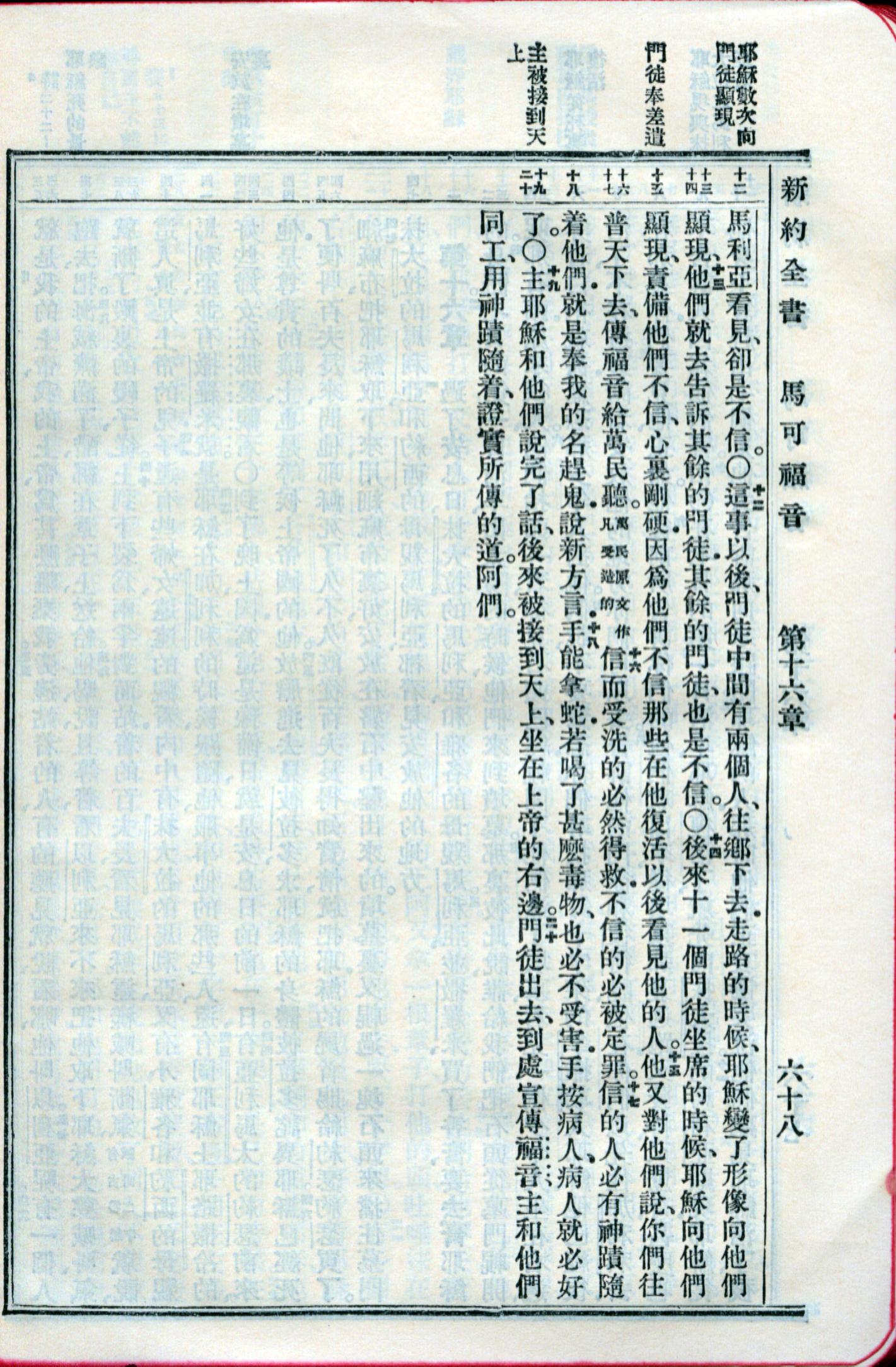1959年新旧约全书 马可福音 16 章 12 节到 16 章 20 节