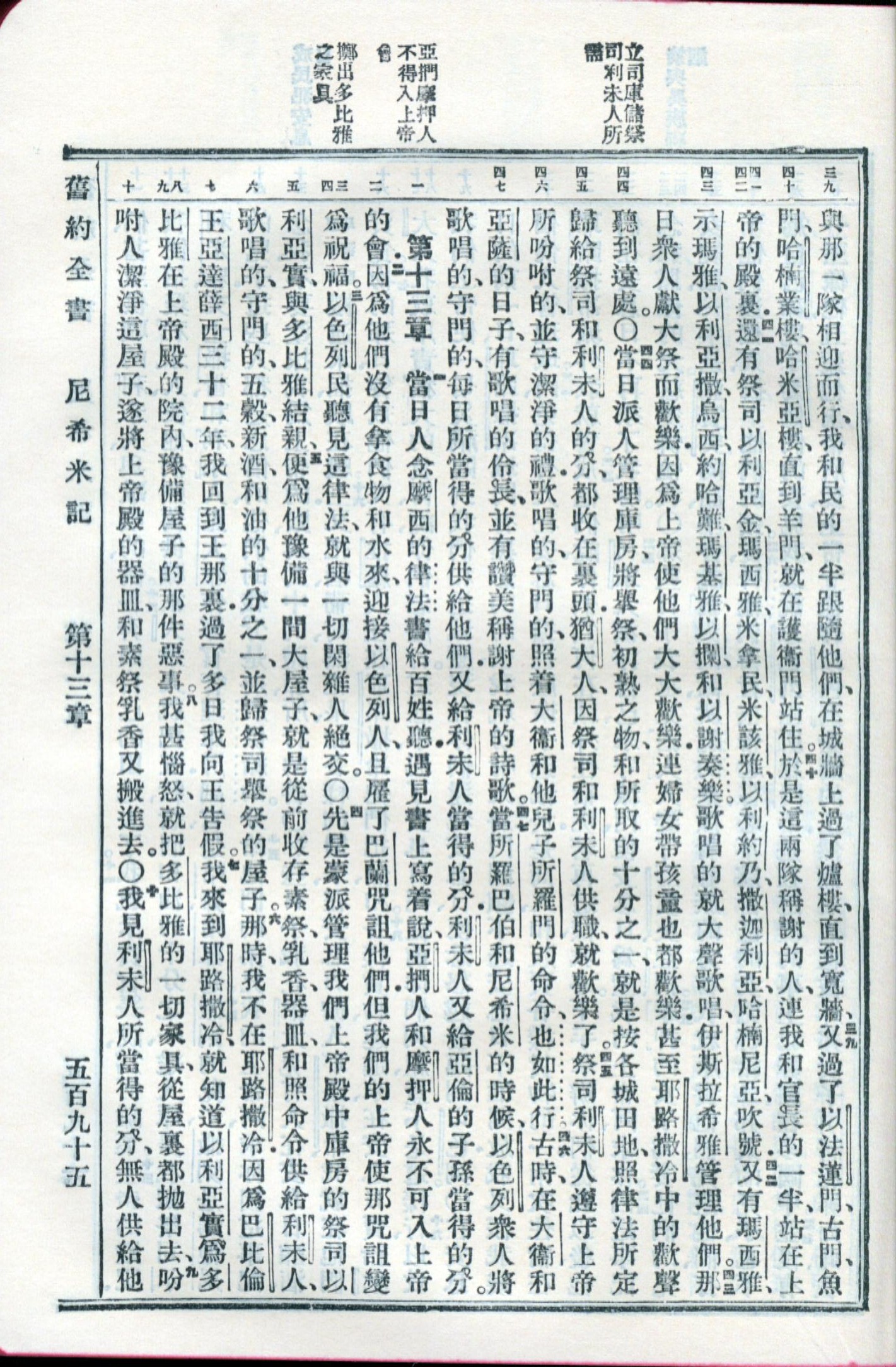 1959年新旧约全书 尼希米记 12 章 39 节到 13 章 10 节