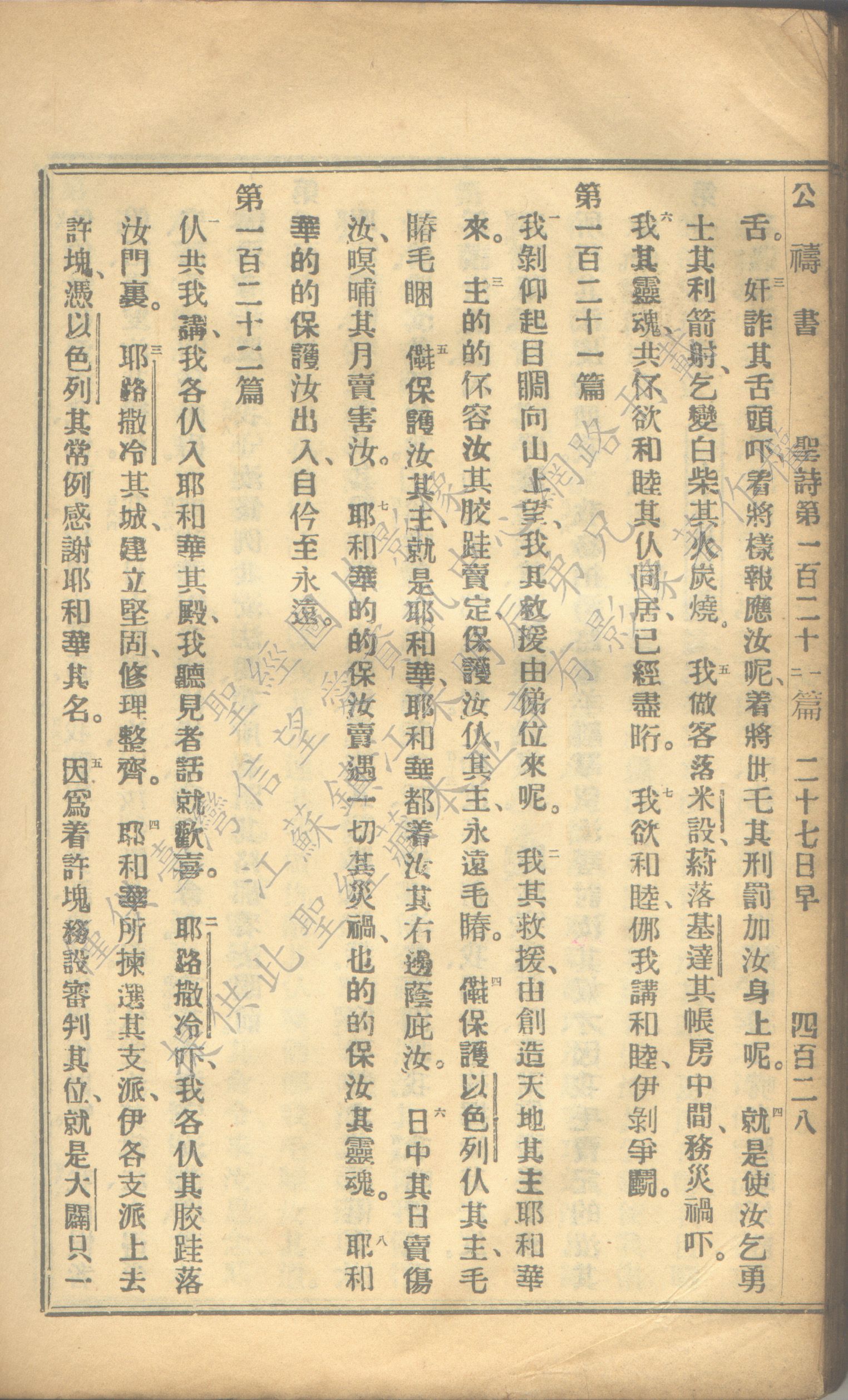 1931年福建教区公祷书 诗篇 120 章 3 节到 122 章 5 节