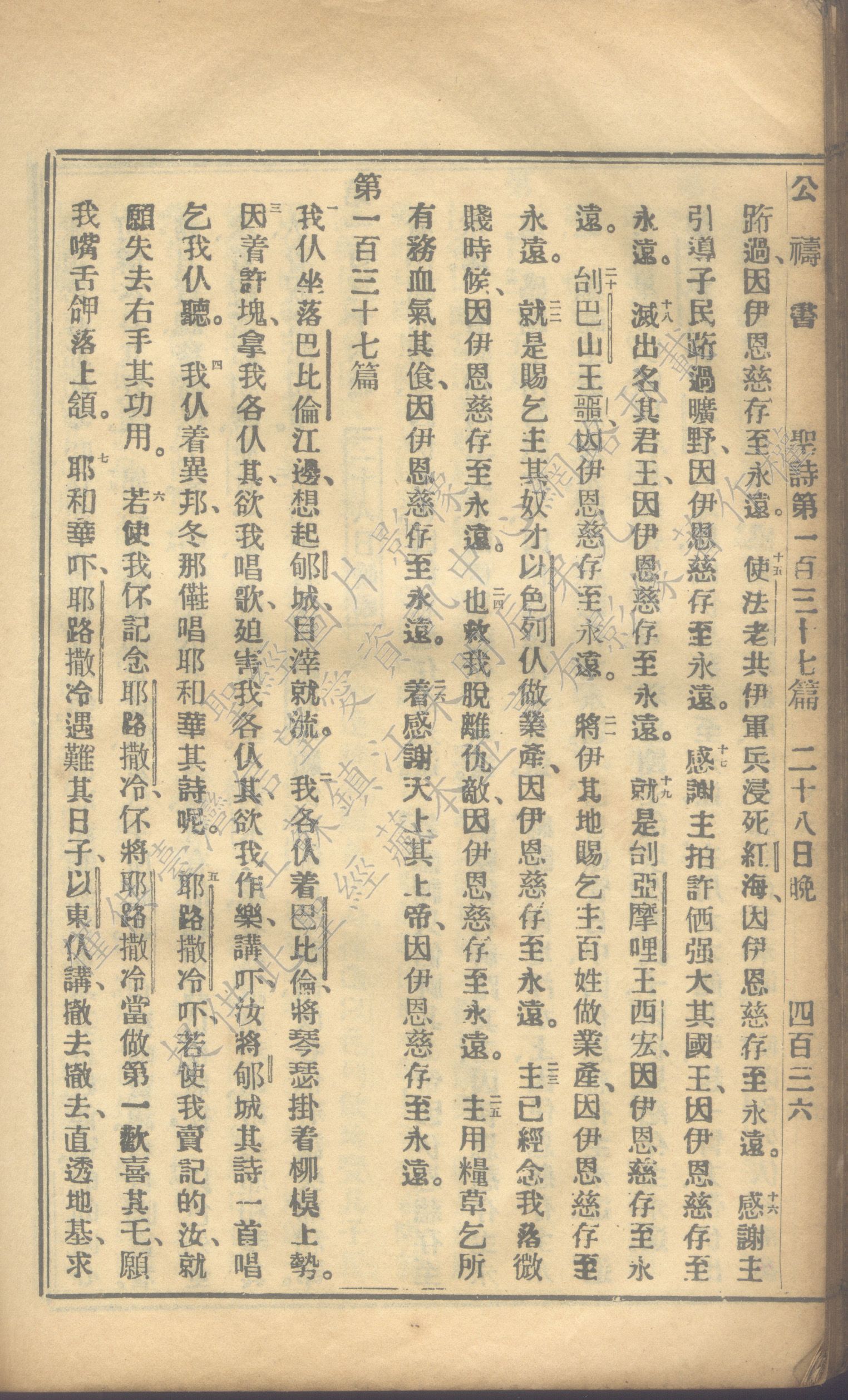 1931年福建教区公祷书 诗篇 136 章 15 节到 137 章 7 节