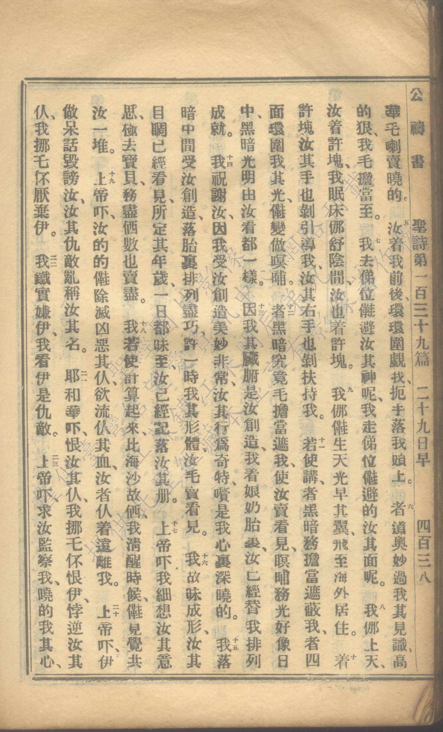 1931年福建教区公祷书 诗篇 139 章 5 节到 139 章 23 节