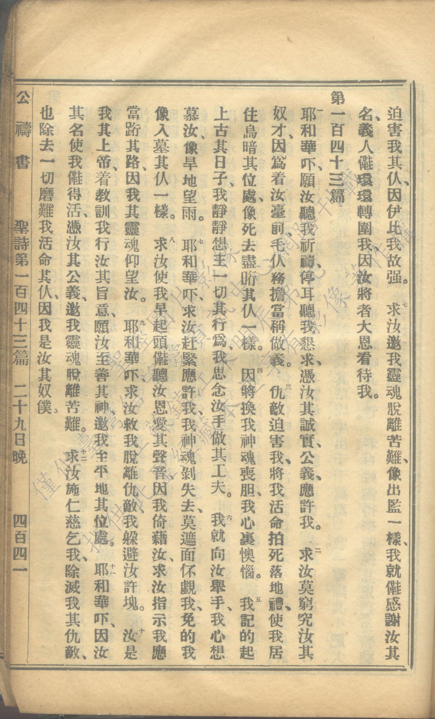 1931年福建教区公祷书 诗篇 142 章 7 节到 143 章 12 节