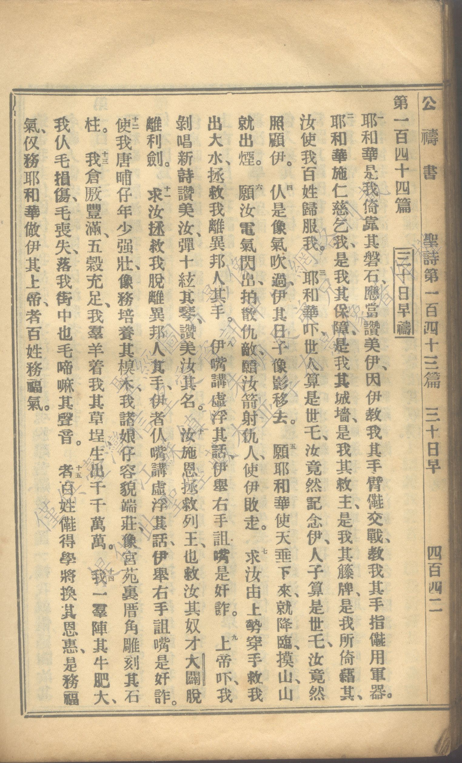 1931年福建教区公祷书 诗篇 144 章 1 节到 144 章 15 节