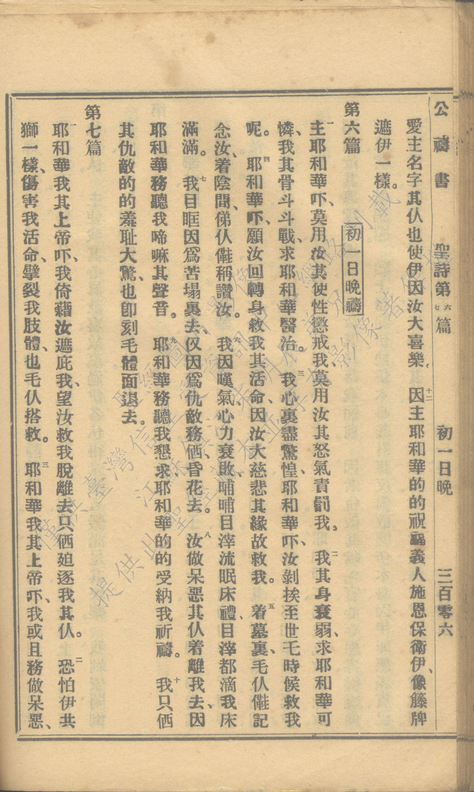 1931年福建教区公祷书 诗篇 5 章 12 节到 7 章 3 节