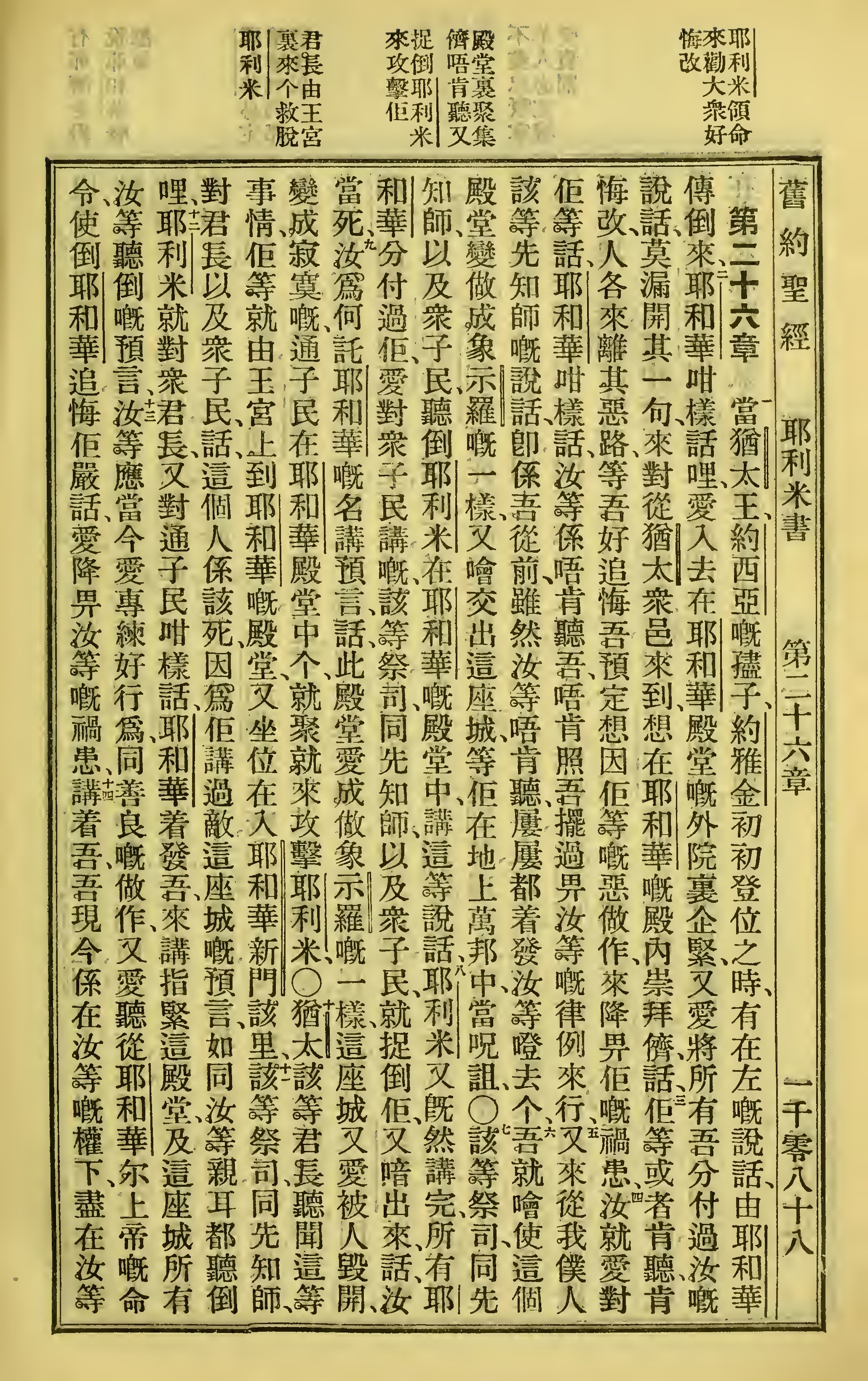 1923年客话新旧约圣经汉字版 耶利米书 26 章 1 节到 26 章 13 节