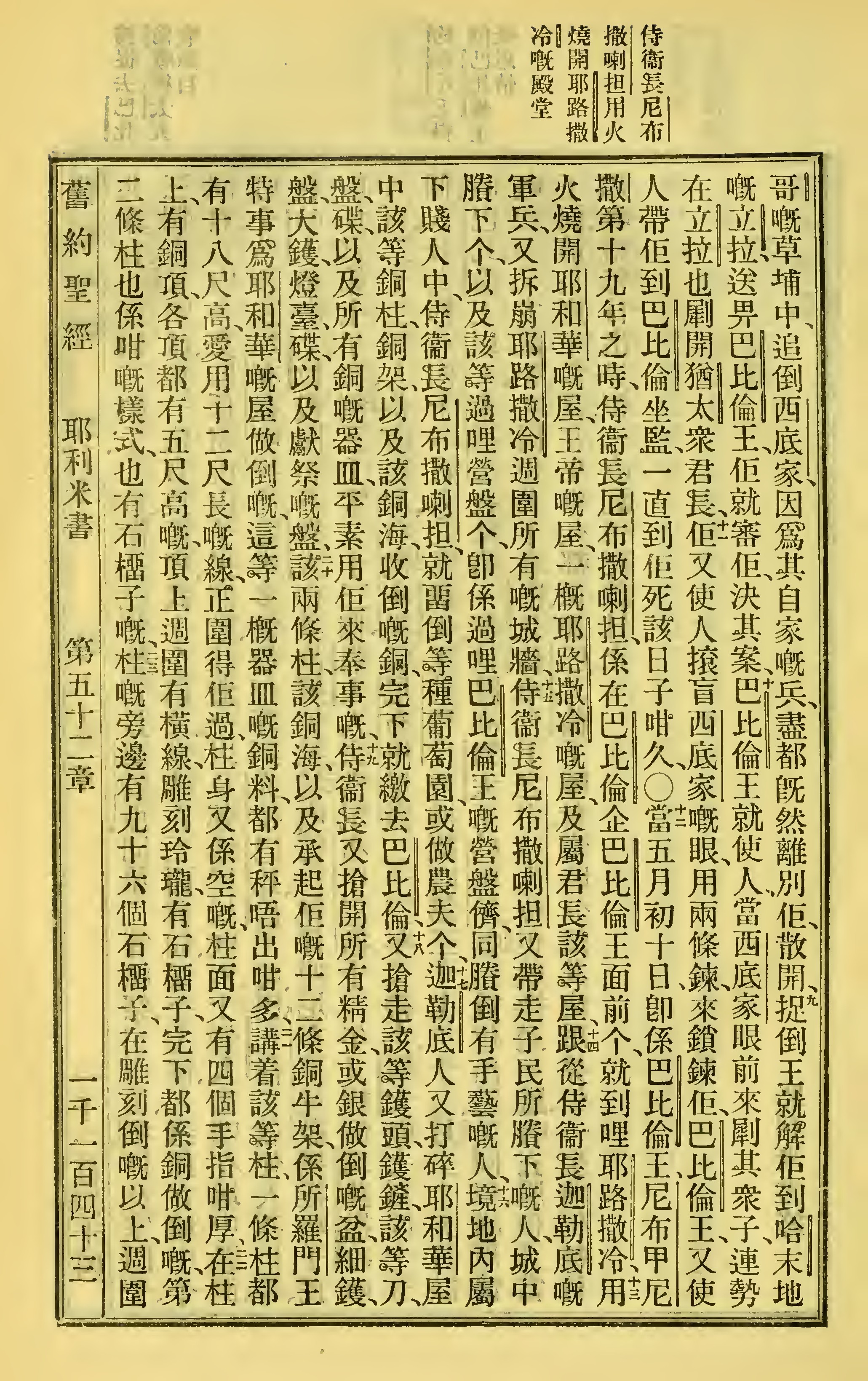 1923年客话新旧约圣经汉字版 耶利米书 52 章 8 节到 52 章 23 节