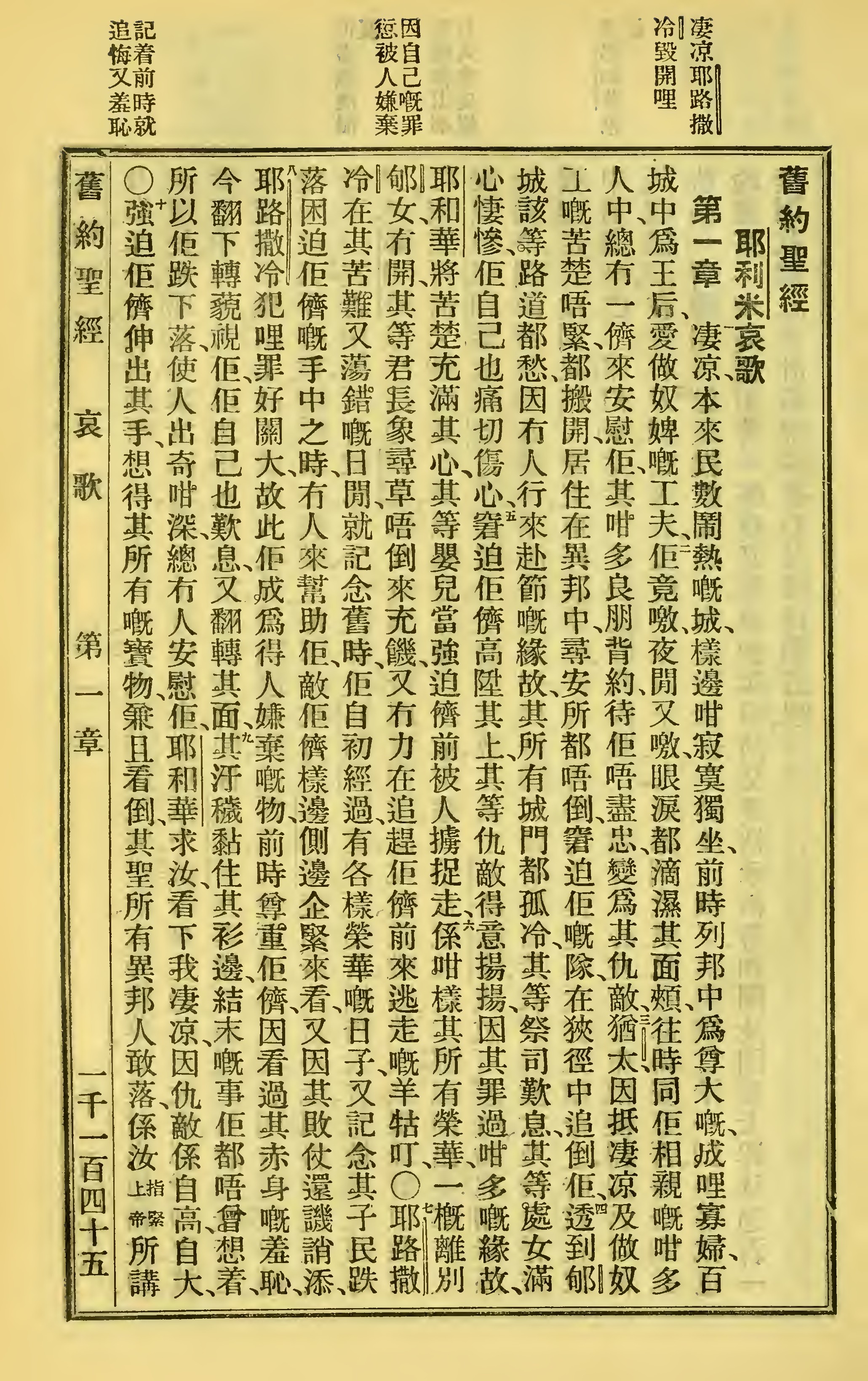 1923年客话新旧约圣经汉字版 耶利米哀歌 1 章 1 节到 1 章 10 节