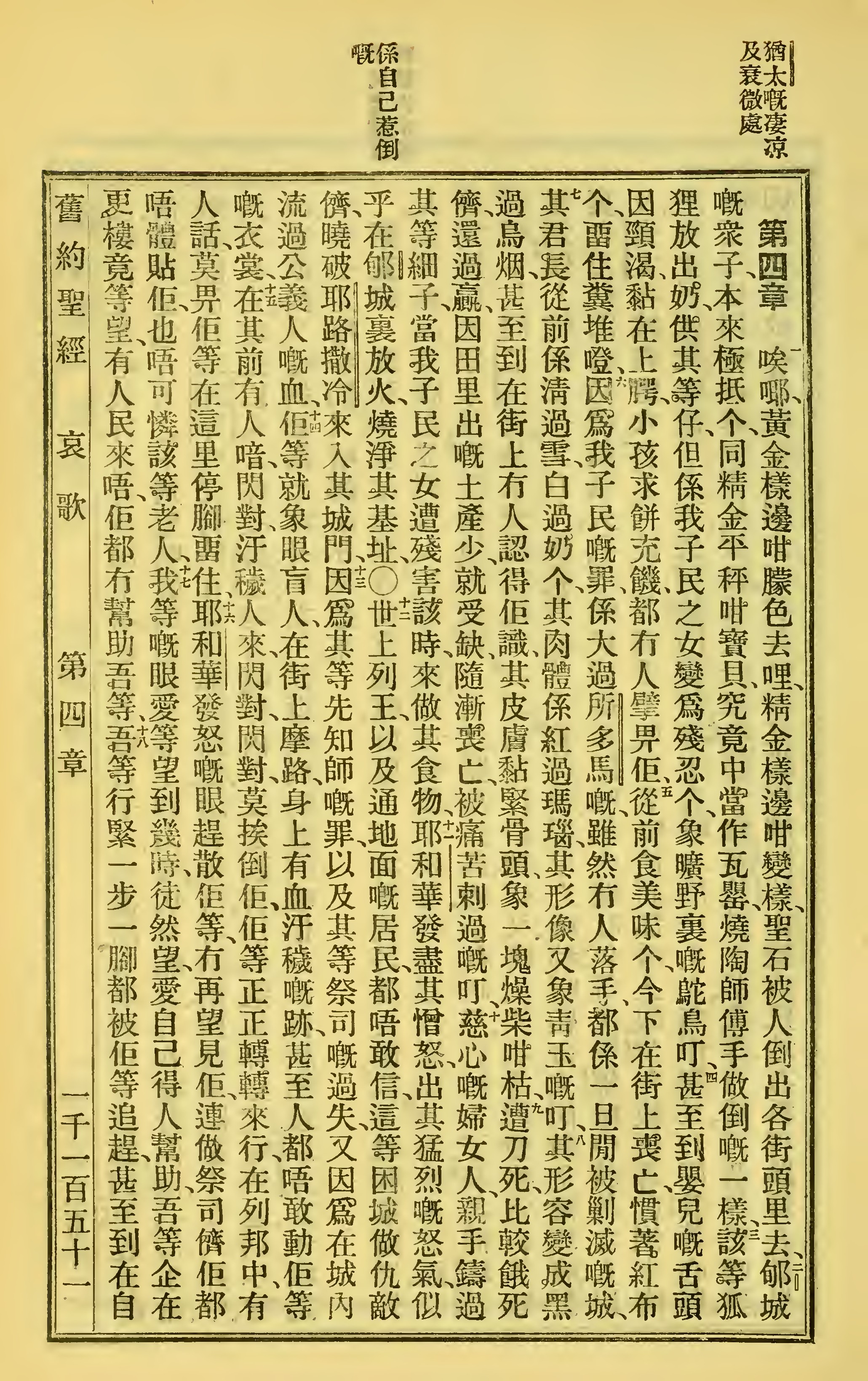 1923年客话新旧约圣经汉字版 耶利米哀歌 4 章 1 节到 4 章 17 节
