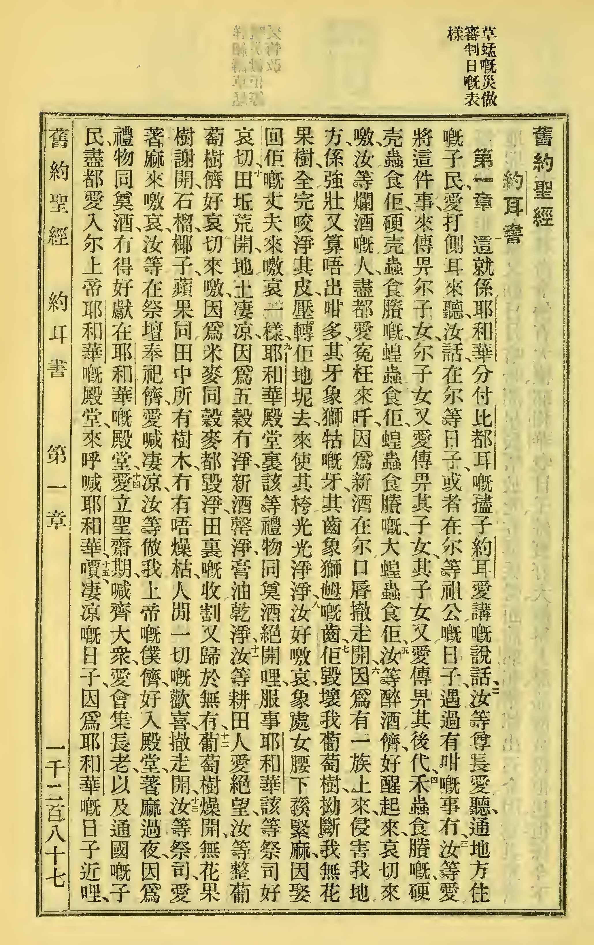 1923年客话新旧约圣经汉字版 约珥书 1 章 1 节到 1 章 15 节