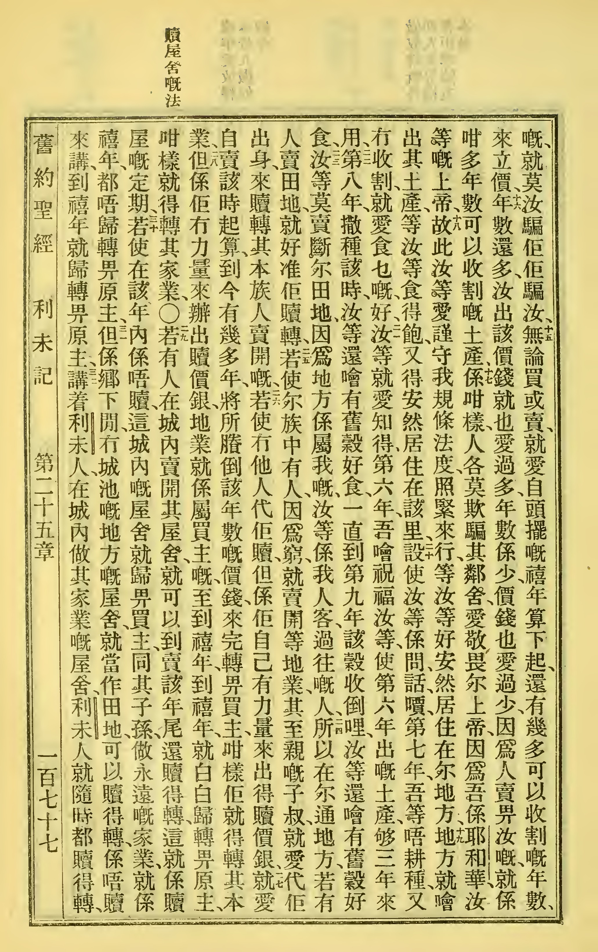 1923年客话新旧约圣经汉字版 利未记 25 章 15 节到 25 章 32 节