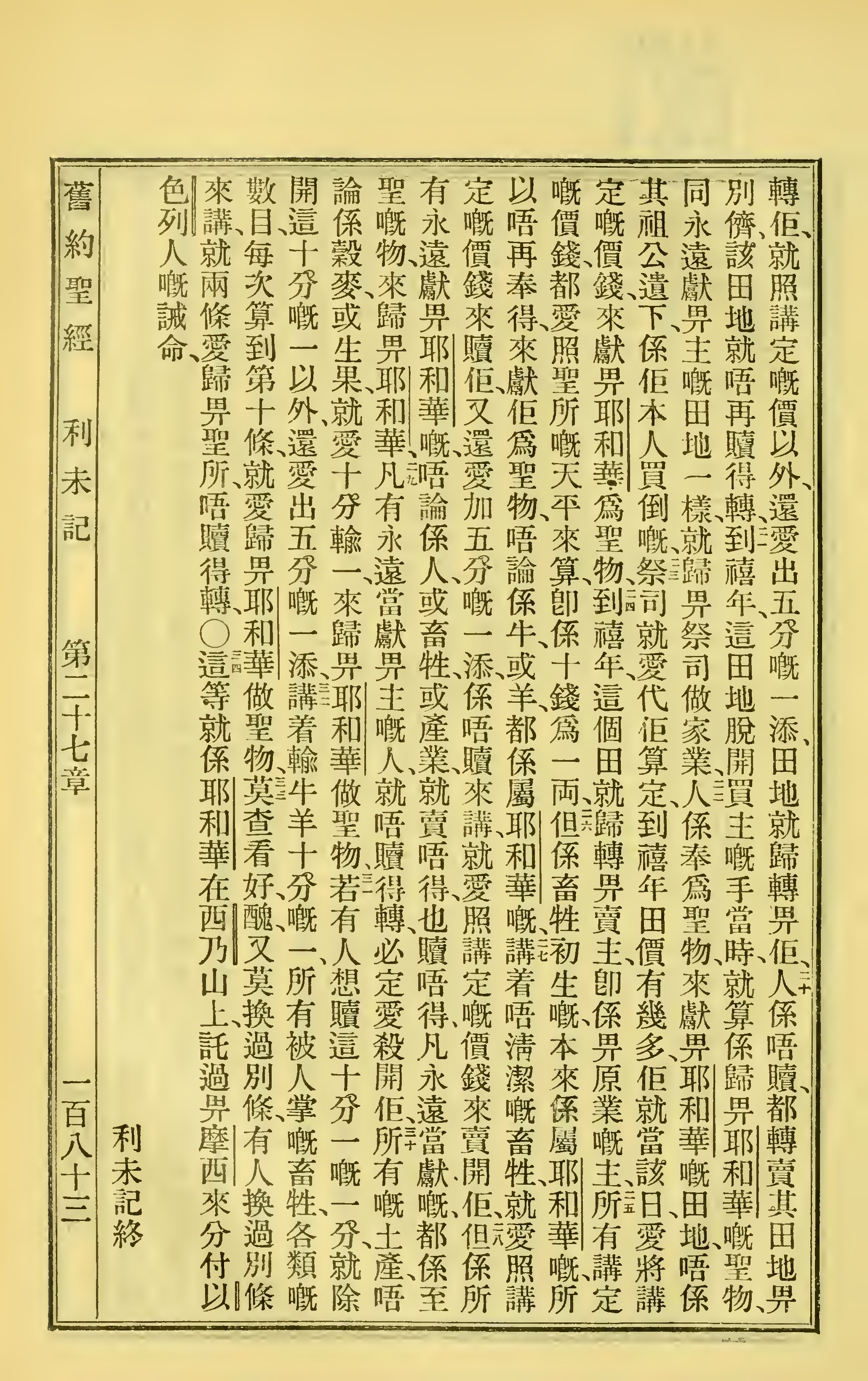 1923年客话新旧约圣经汉字版 利未记 27 章 19 节到 27 章 34 节