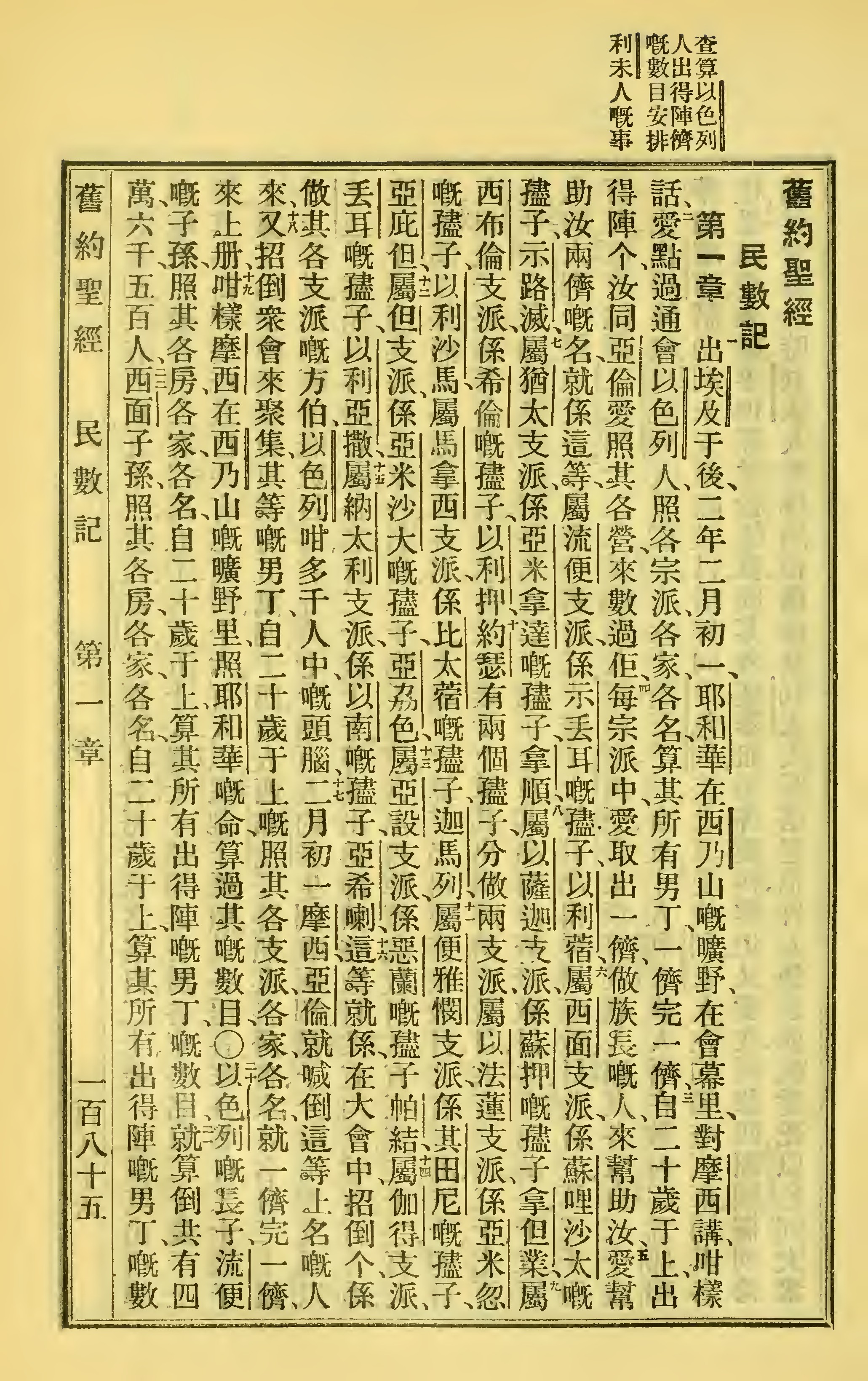 1923年客话新旧约圣经汉字版 民数记 1 章 1 节到 1 章 22 节