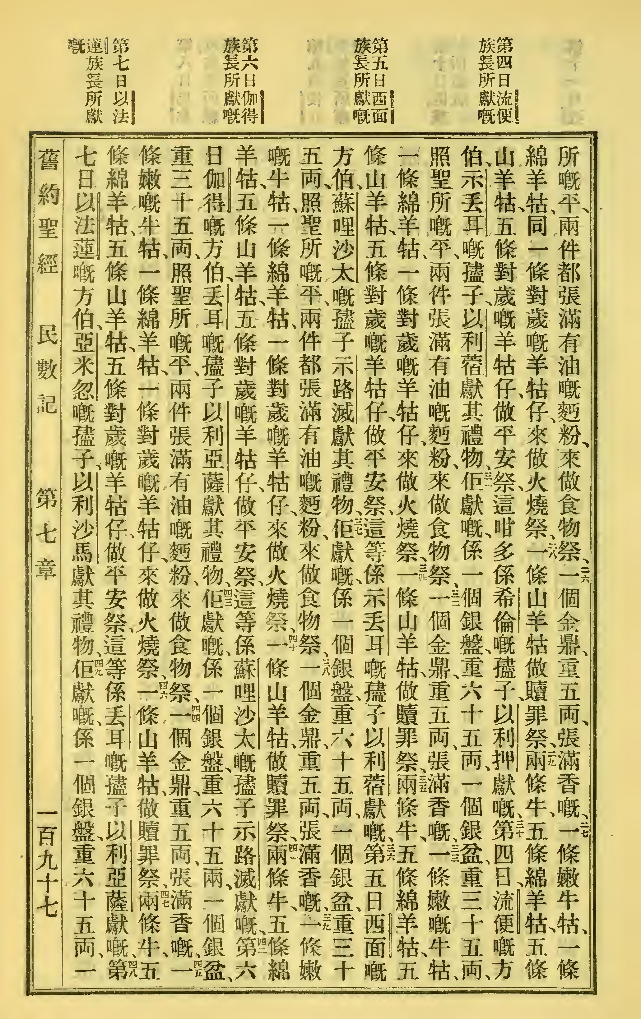 1923年客话新旧约圣经汉字版 民数记 7 章 26 节到 7 章 48 节
