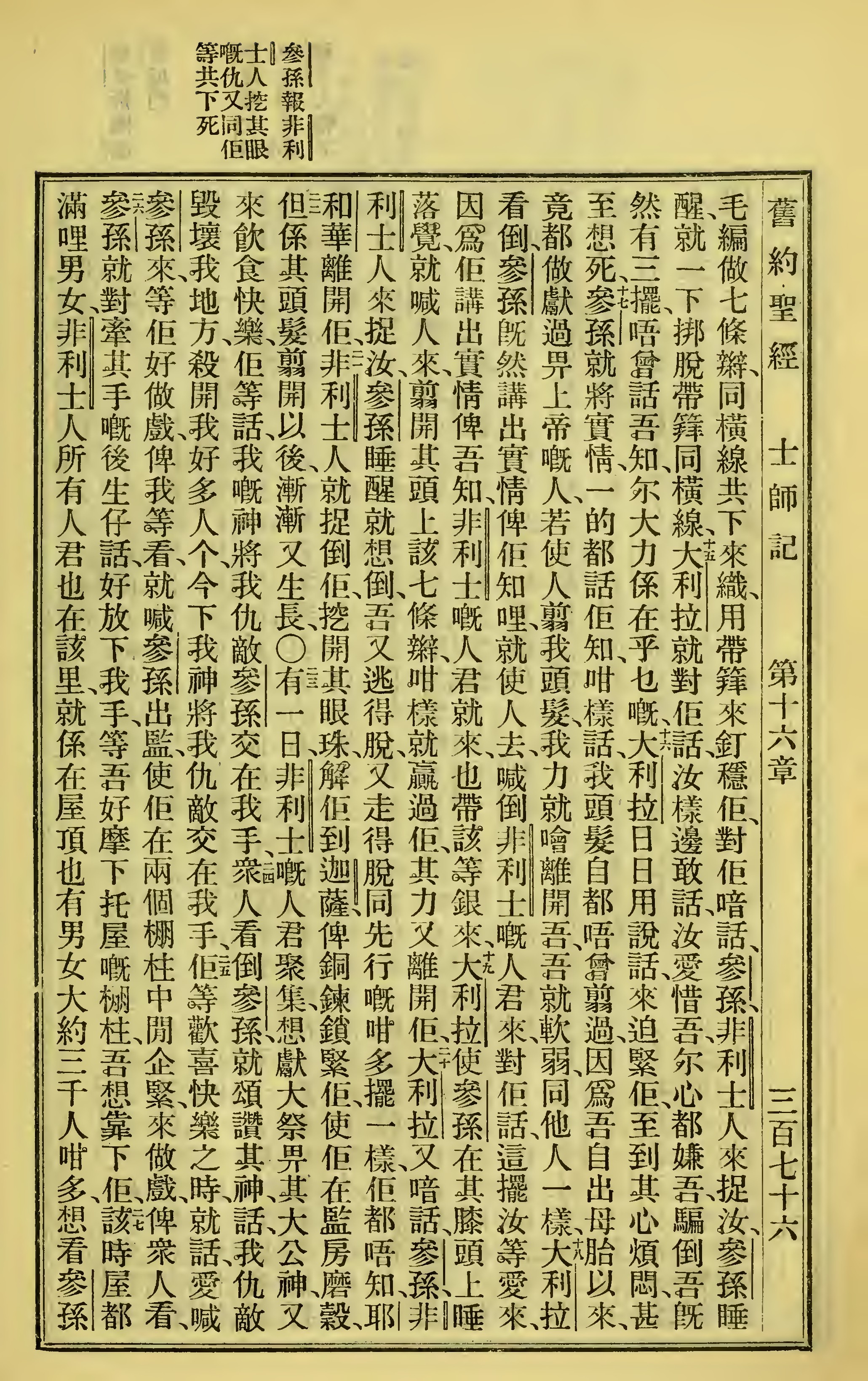 1923年客话新旧约圣经汉字版 士师记 16 章 14 节到 16 章 27 节