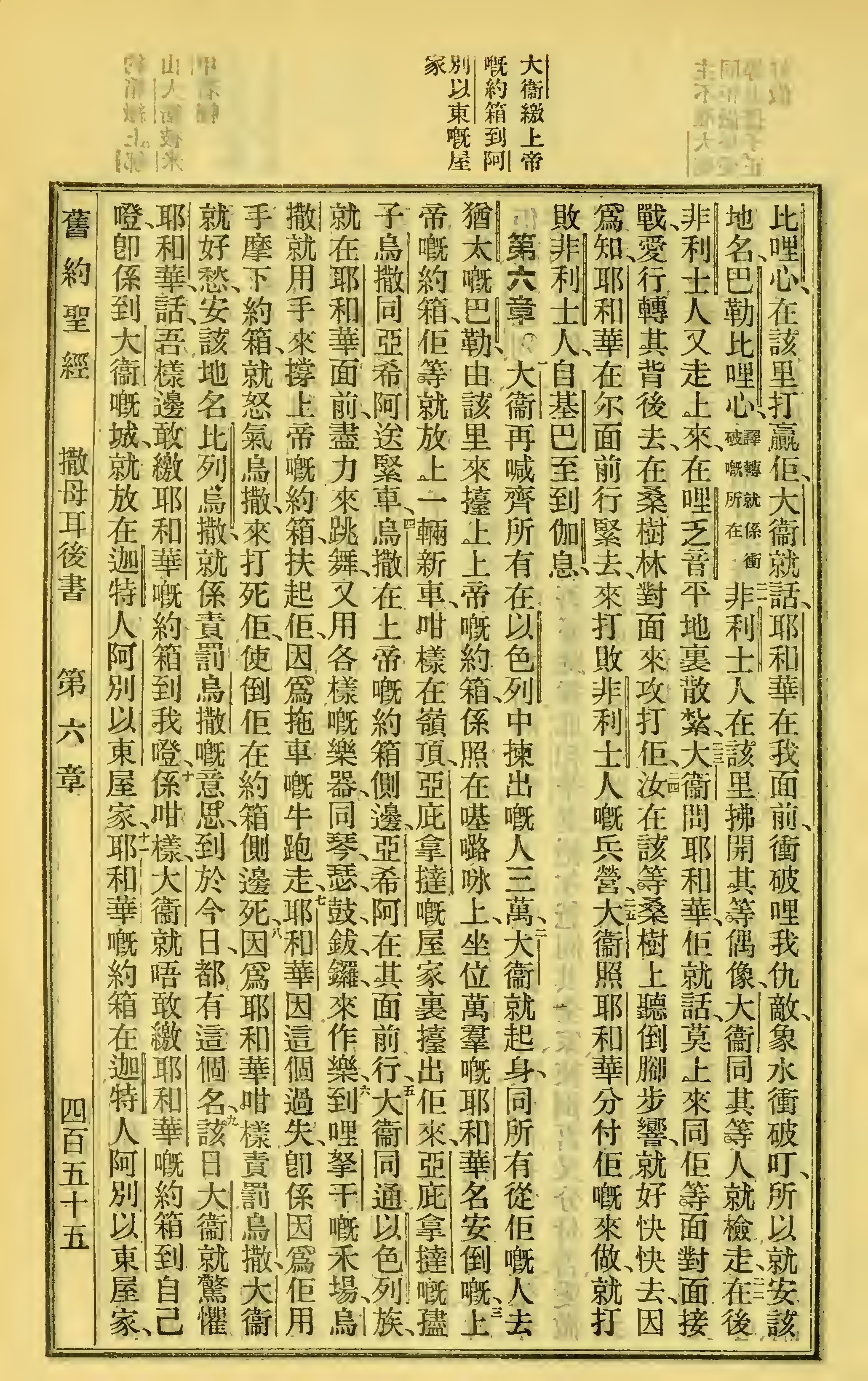 1923年客话新旧约圣经汉字版 撒母耳记下 5 章 20 节到 6 章 10 节