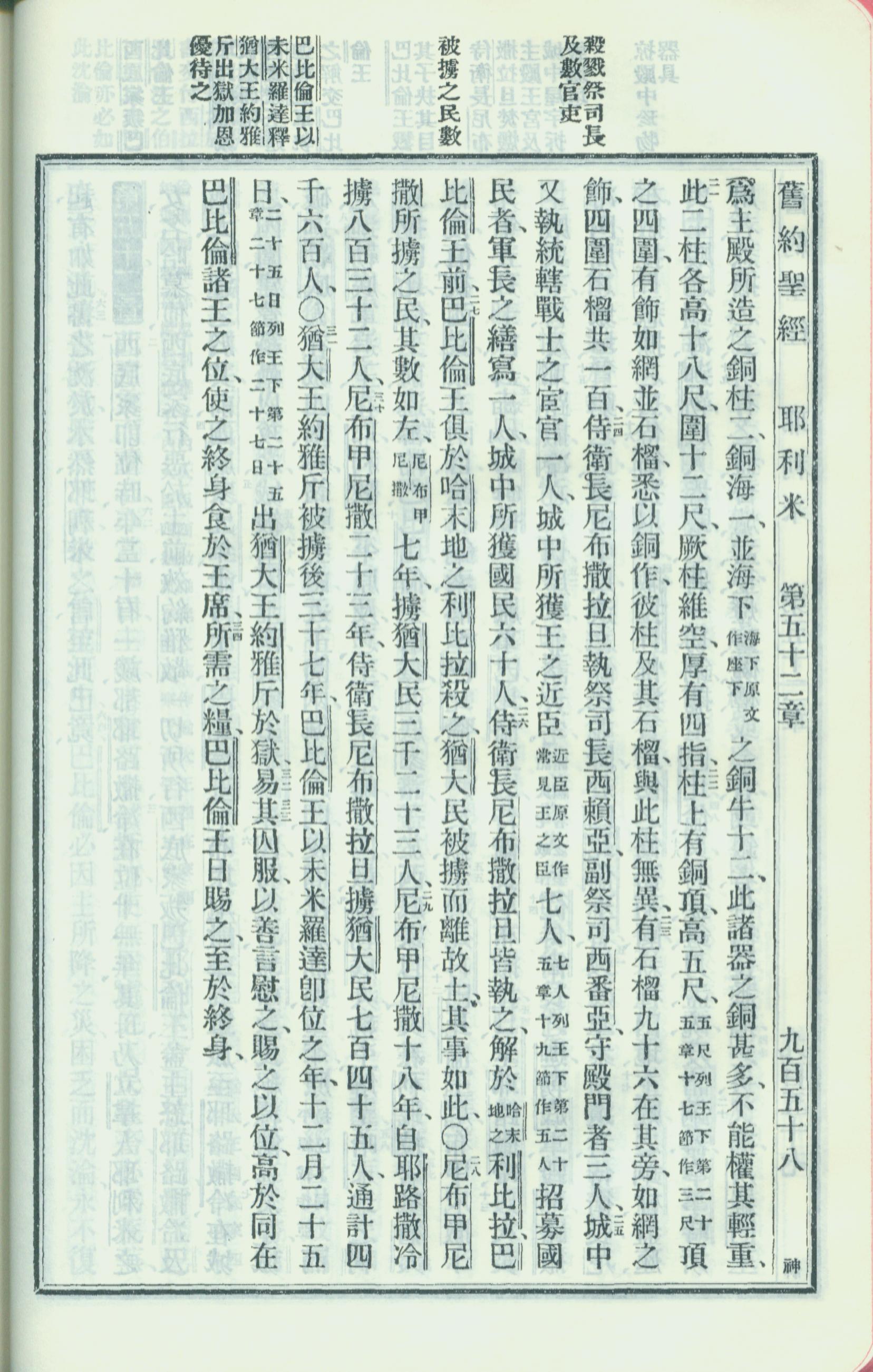 1913年新旧约全书 耶利米书 52 章 20 节到 52 章 34 节
