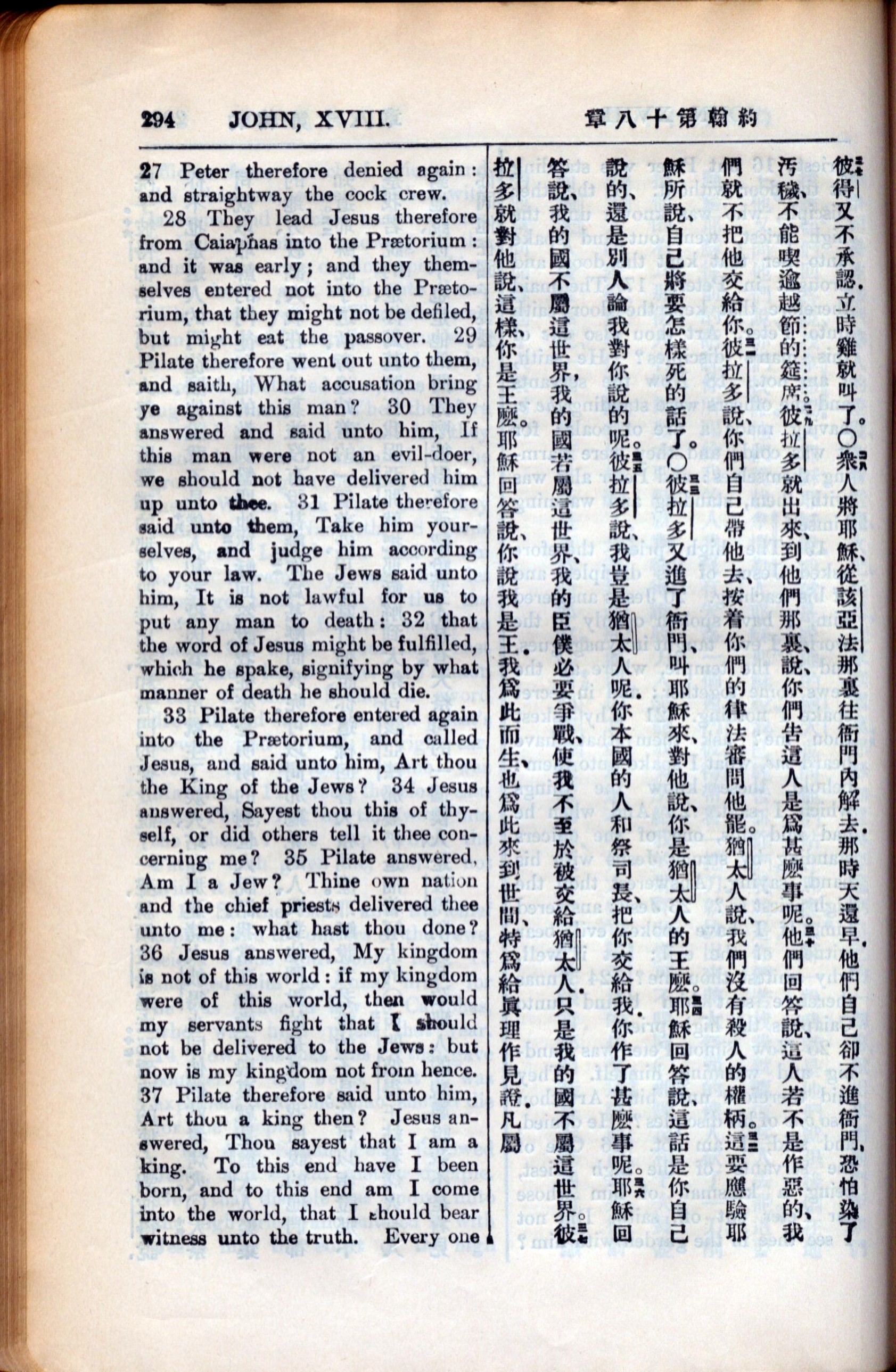 1936年新约全书 约翰福音 18 章 27 节到 18 章 37 节