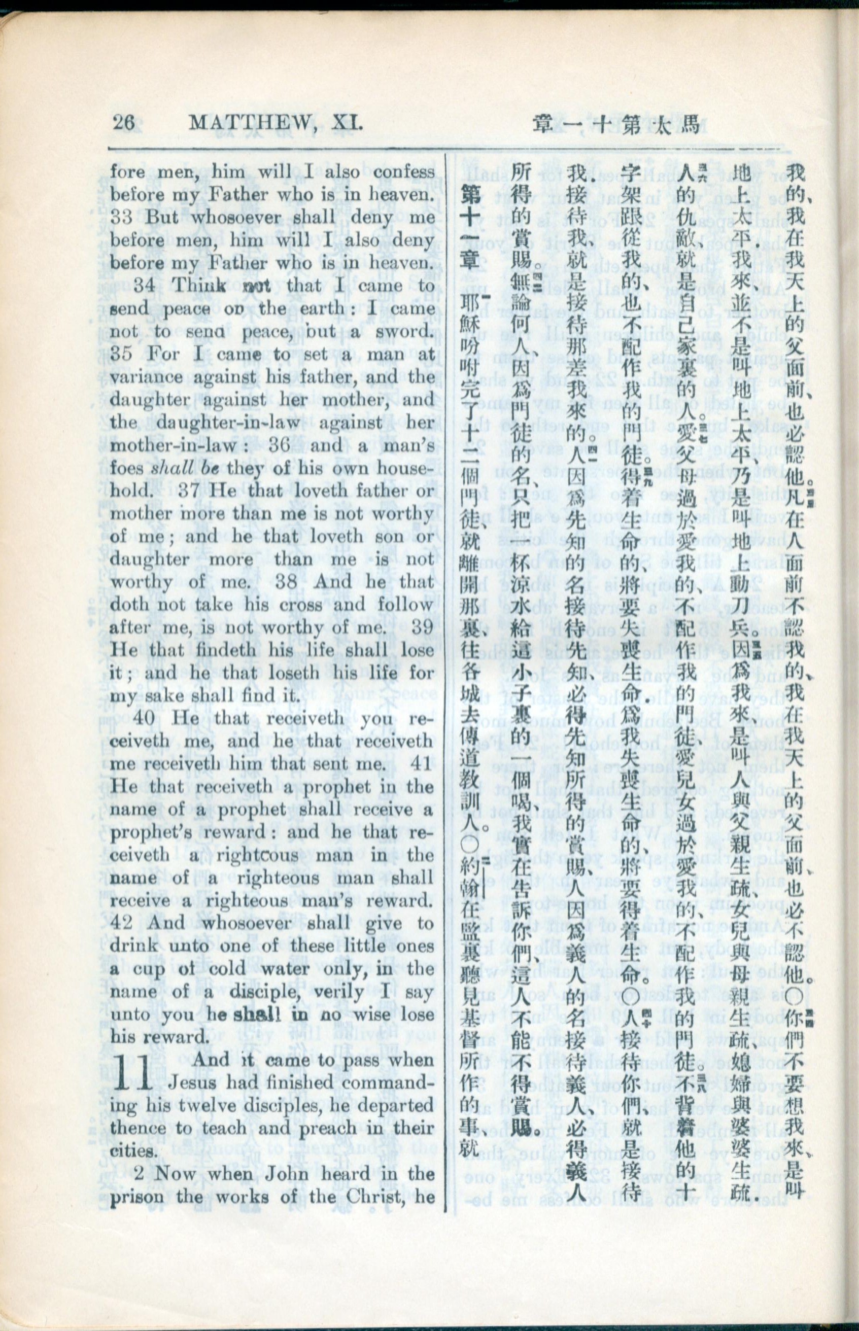 1936年新约全书 马太福音 10 章 33 节到 11 章 2 节