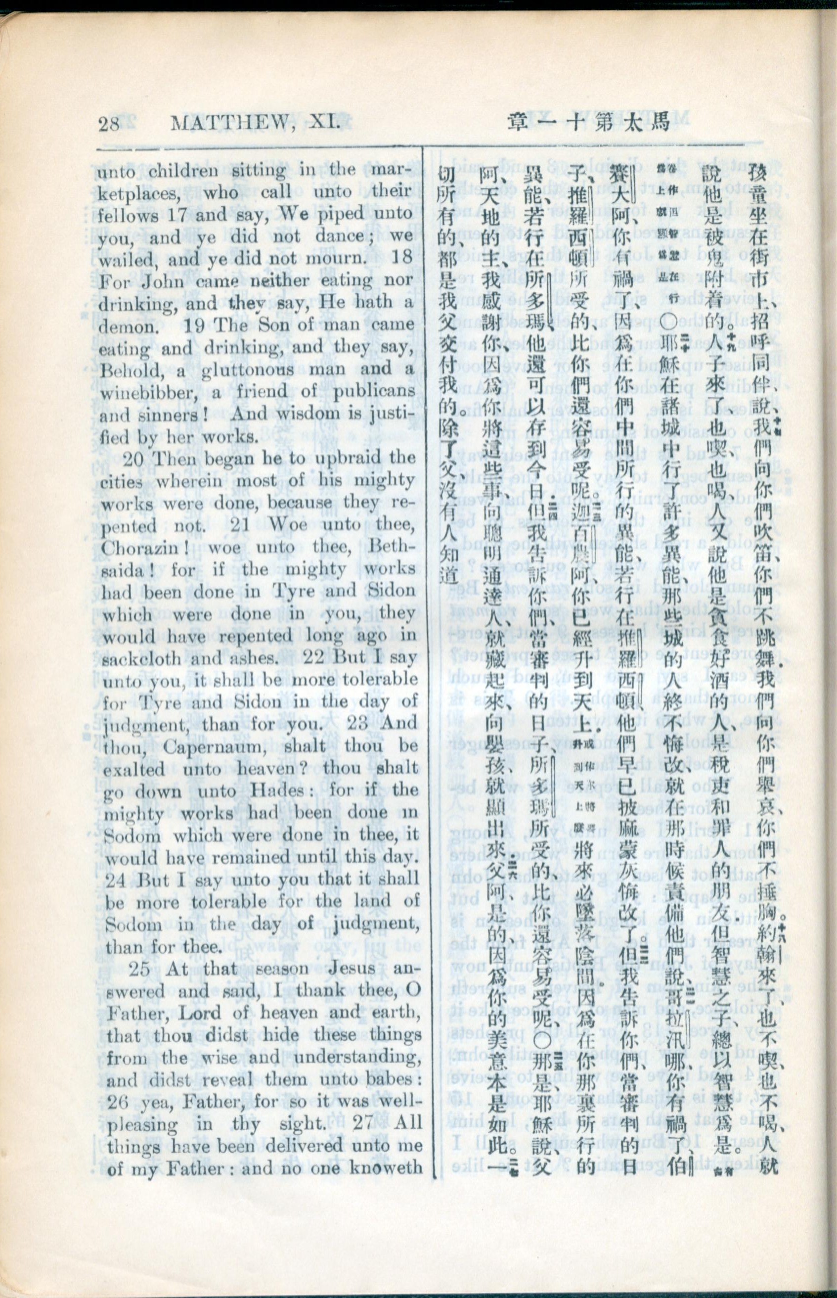 1936年新约全书 马太福音 11 章 17 节到 11 章 27 节