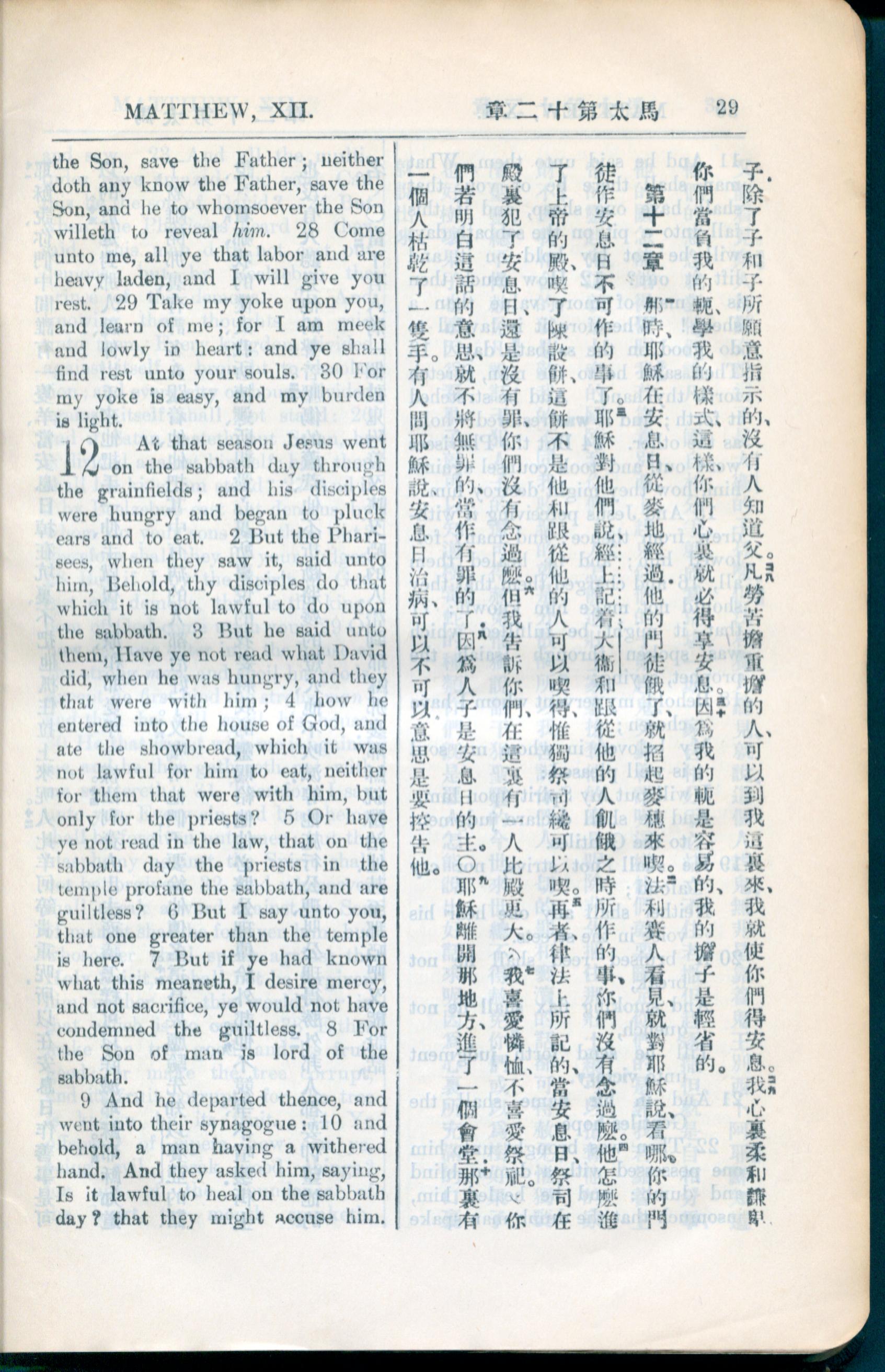 1936年新约全书 马太福音 11 章 28 节到 12 章 10 节