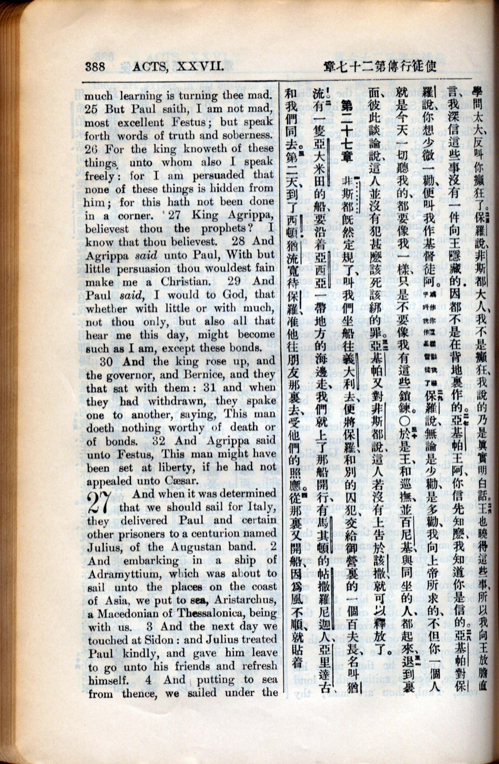1936年新约全书 使徒行传 26 章 25 节到 27 章 4 节