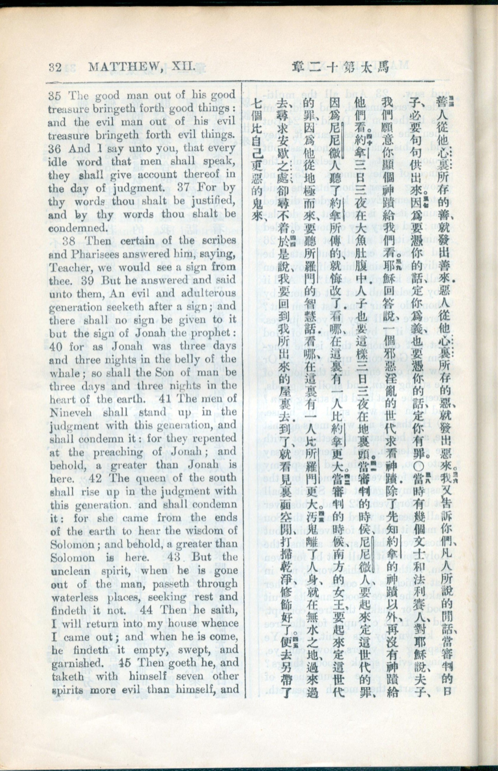 1936年新约全书 马太福音 12 章 35 节到 12 章 45 节