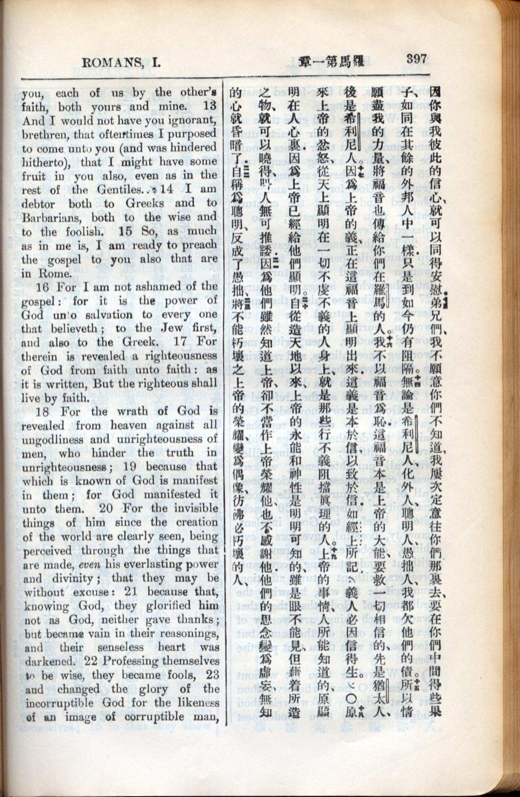 1936年新约全书 罗马书 1 章 13 节到 1 章 23 节