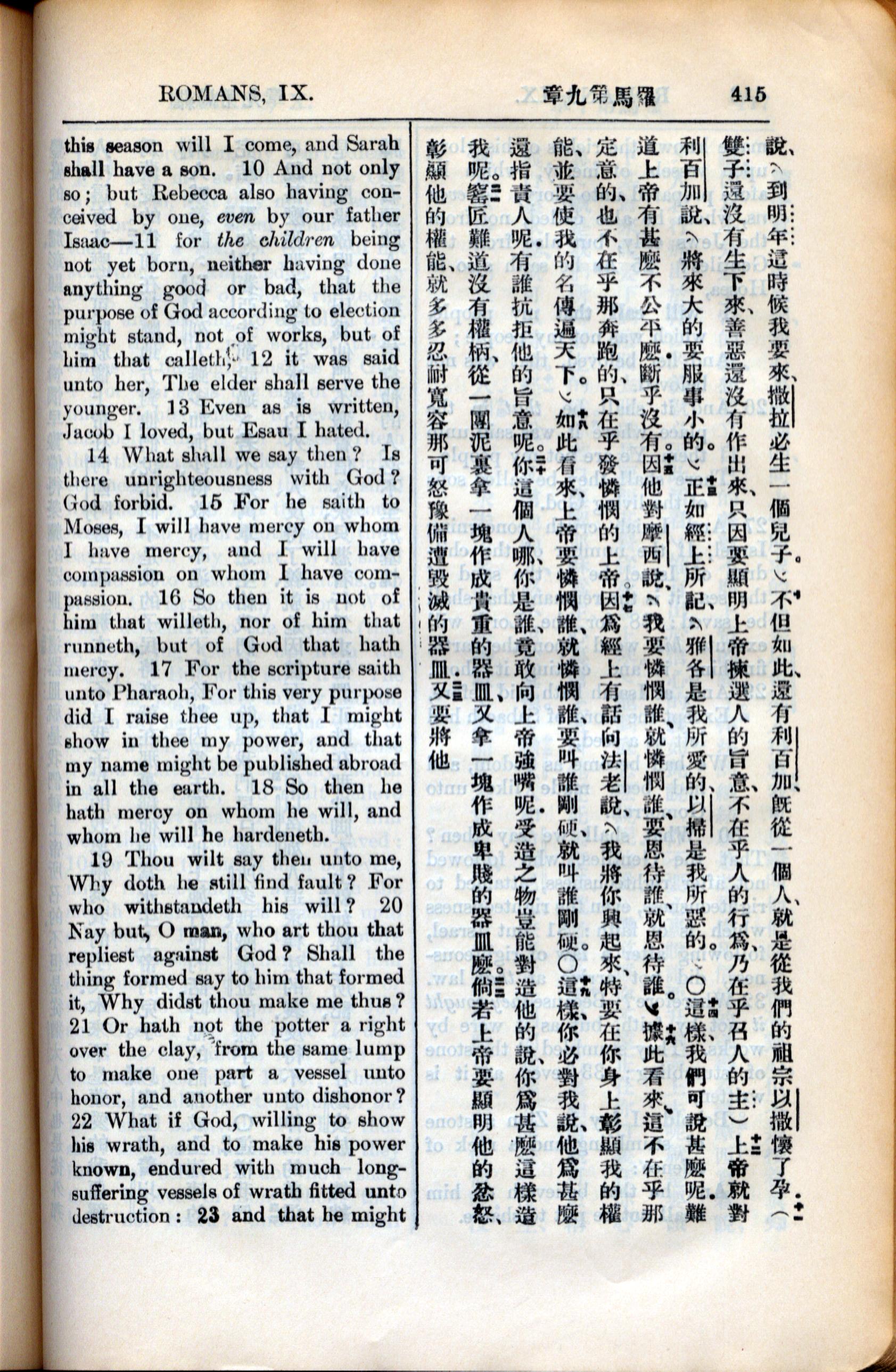 1936年新约全书 罗马书 9 章 9 节到 9 章 22 节