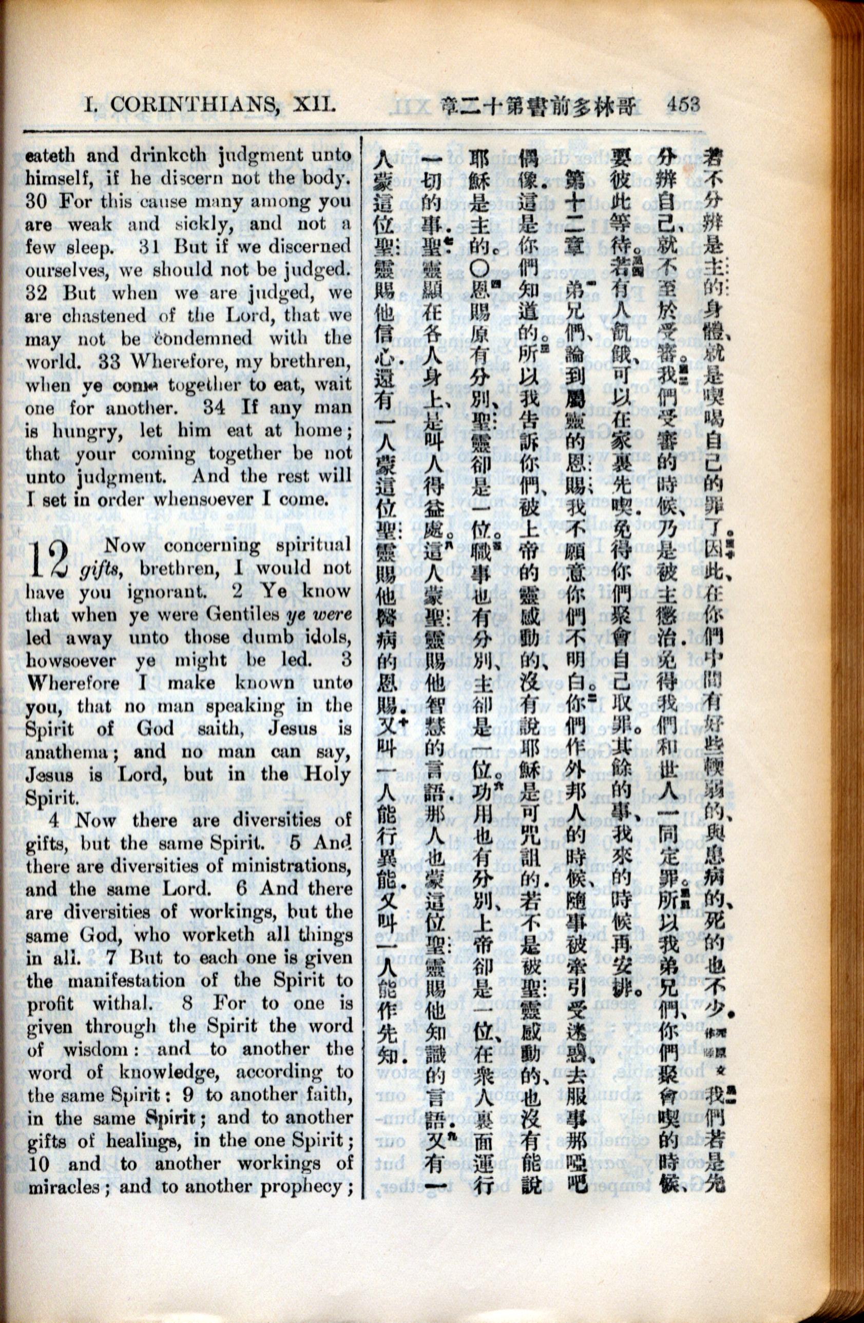 1936年新约全书 哥林多前书 11 章 29 节到 12 章 10 节