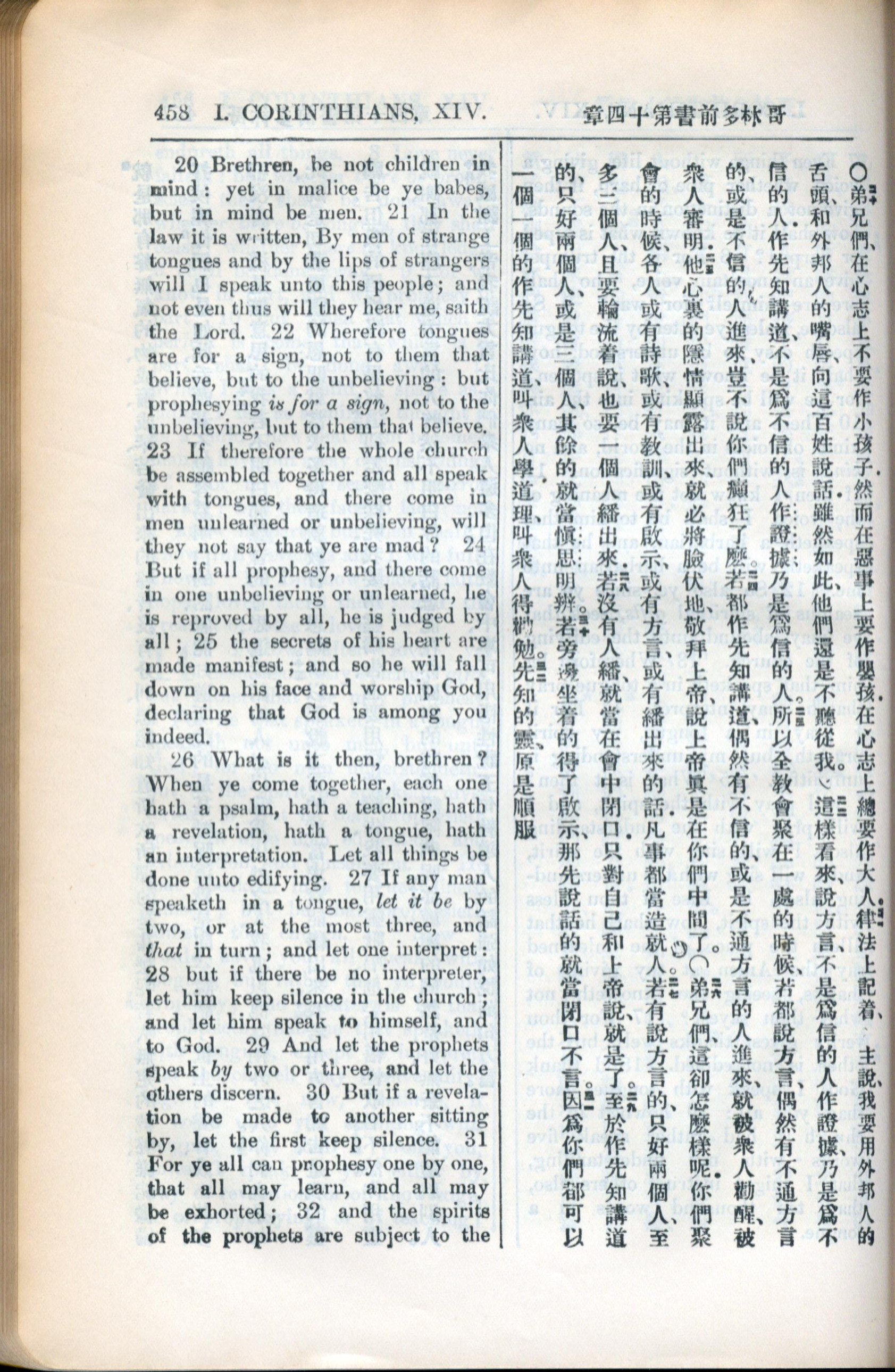 1936年新约全书 哥林多前书 14 章 20 节到 14 章 32 节